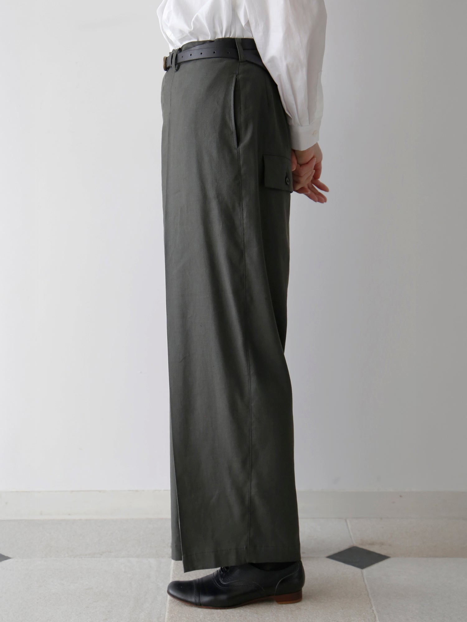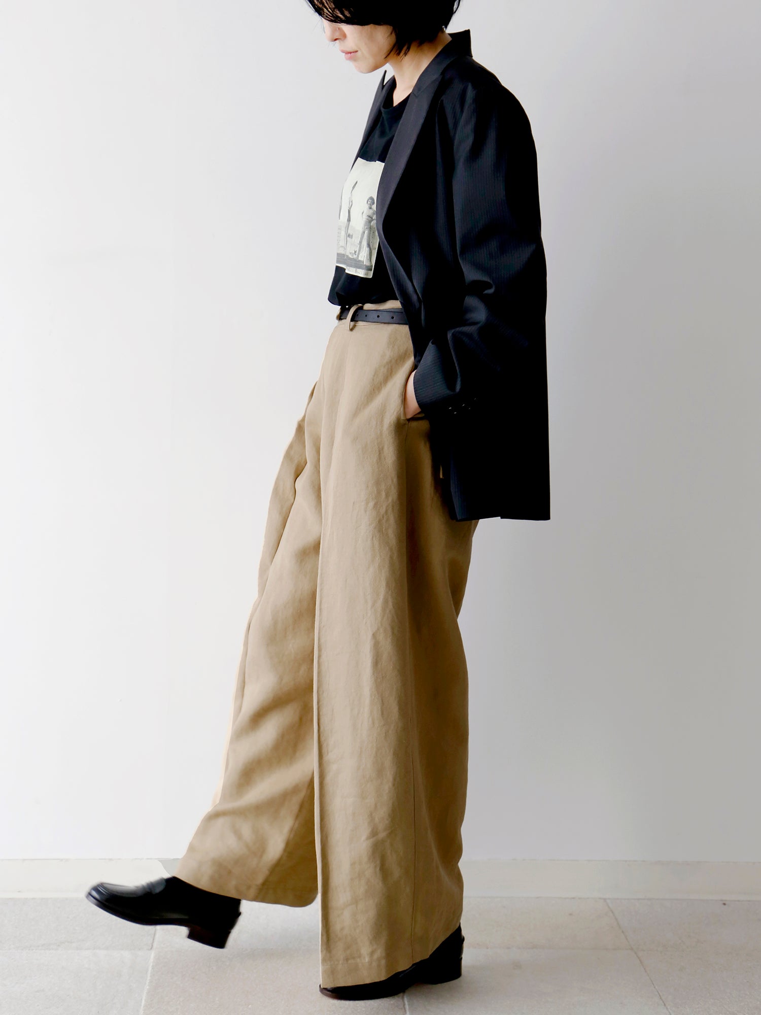 ウエストにはベルトループつき。トップスをインすればきちんとした印象に、ベルトを合わせてウエストマークすれば、シルエットの変化も楽しめます。
