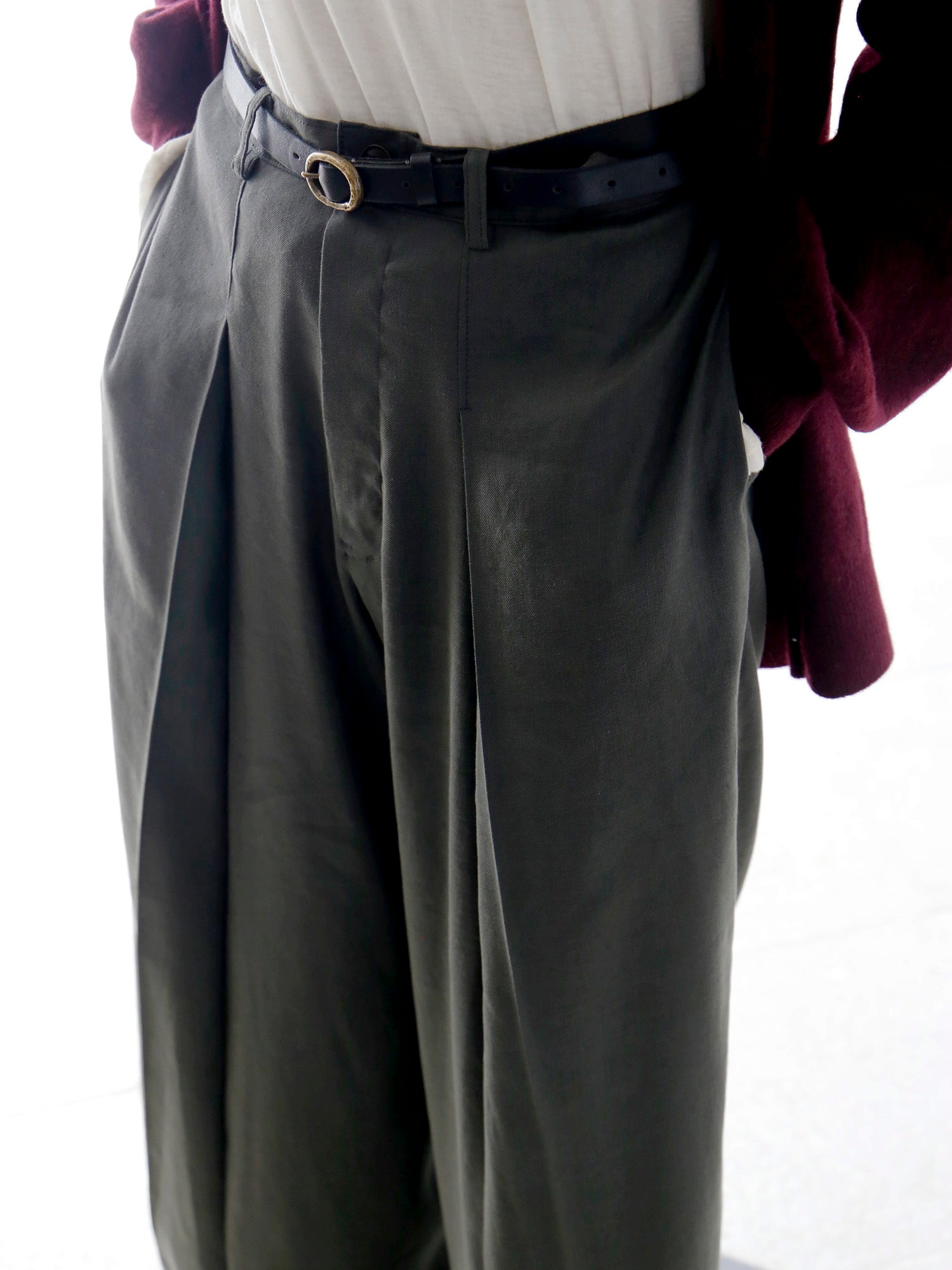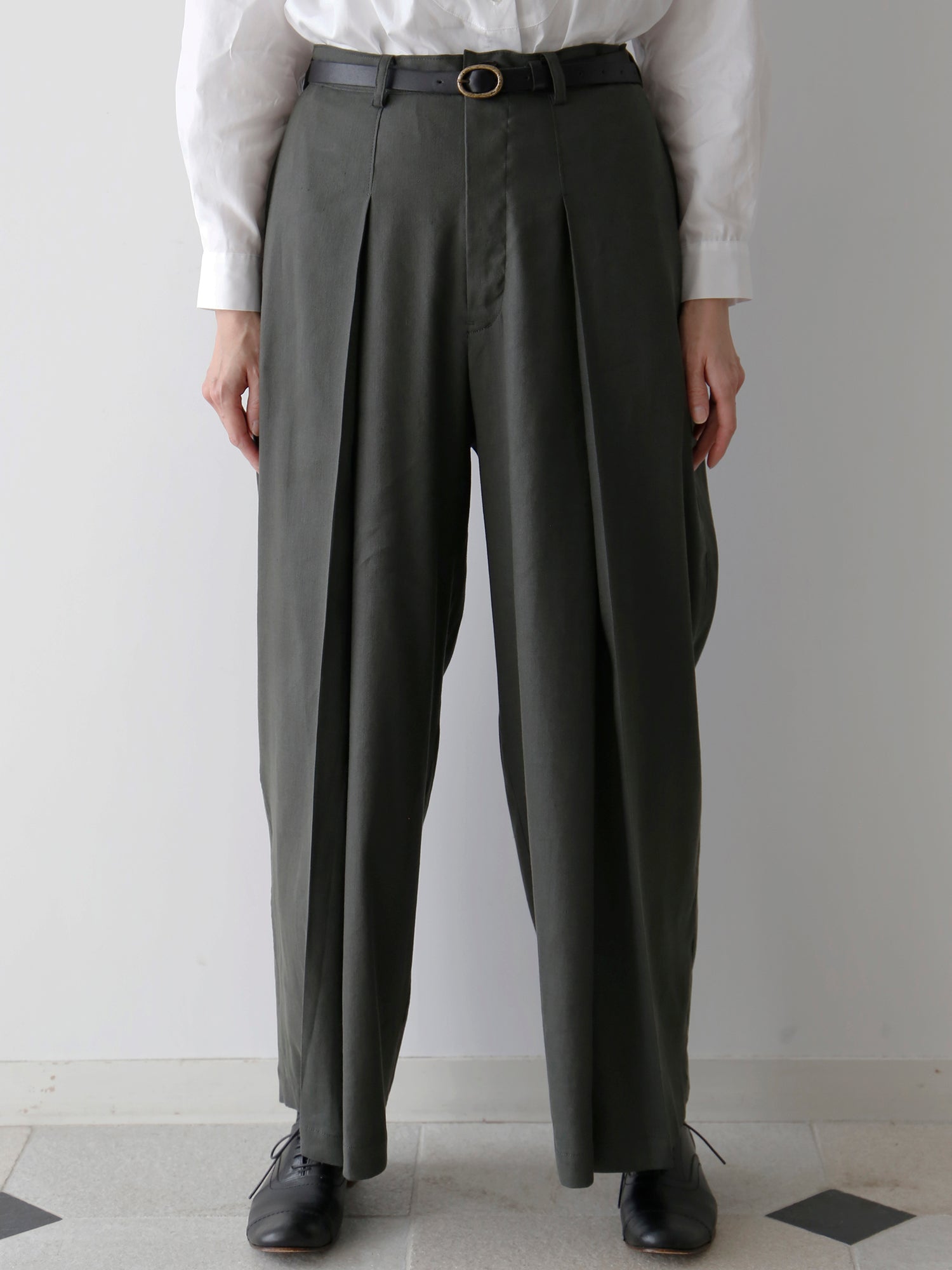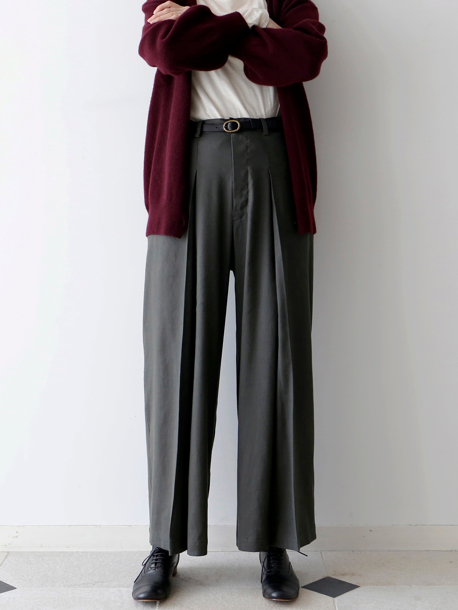 深く入ったワンタックが印象的なフルレングスのパンツ。