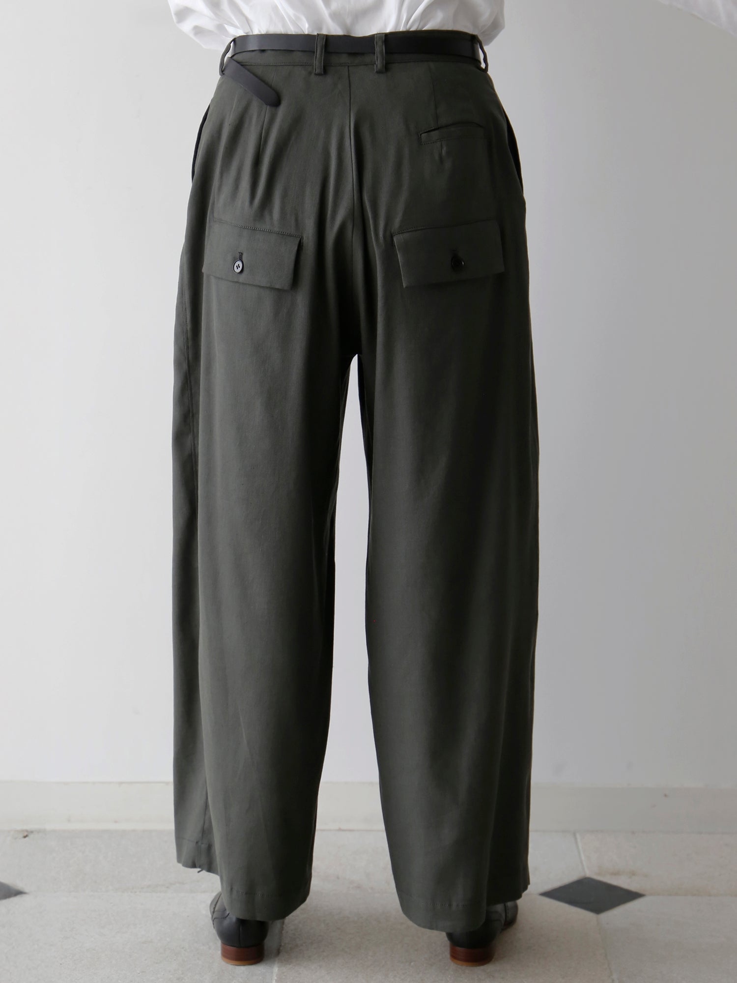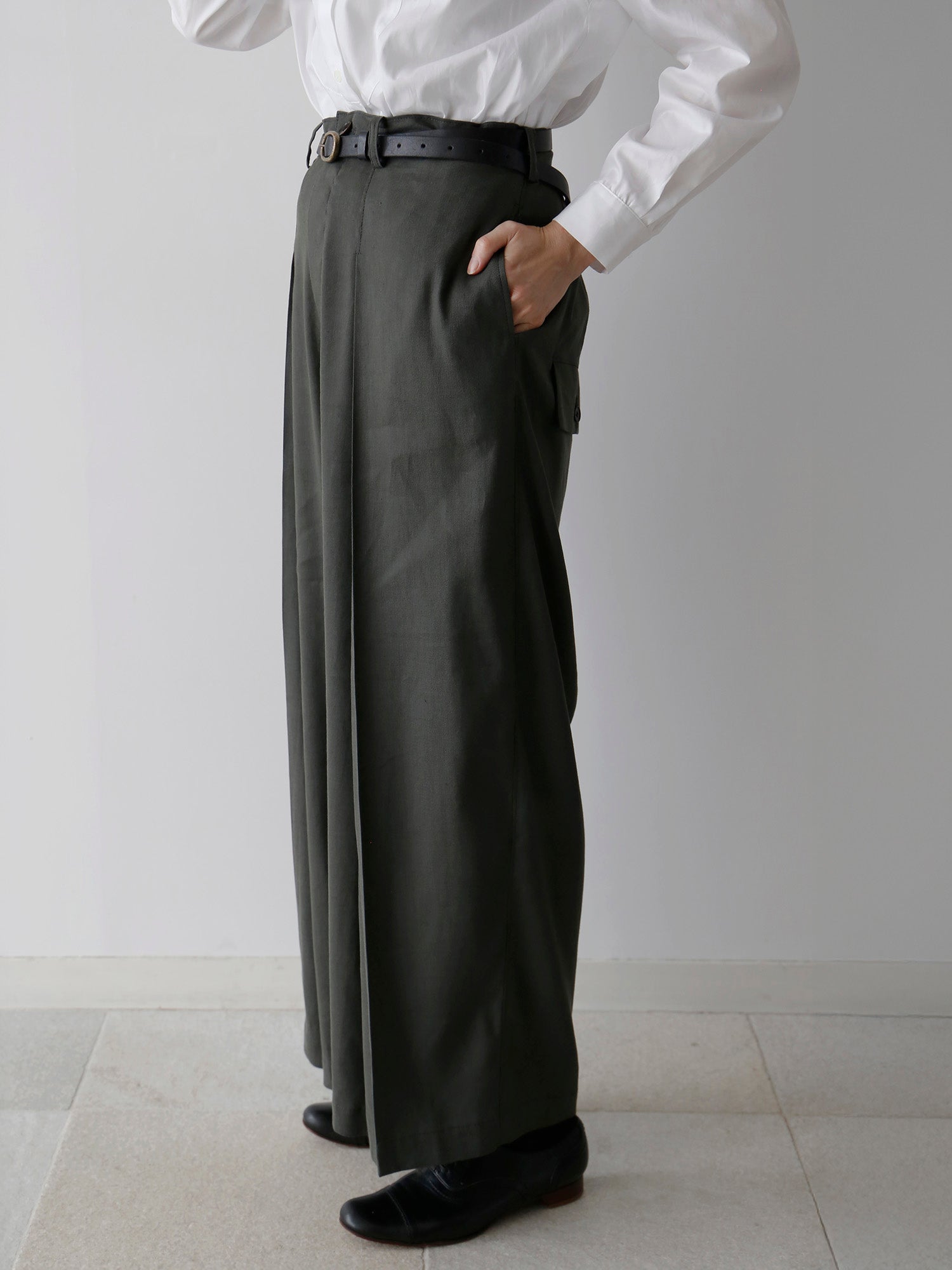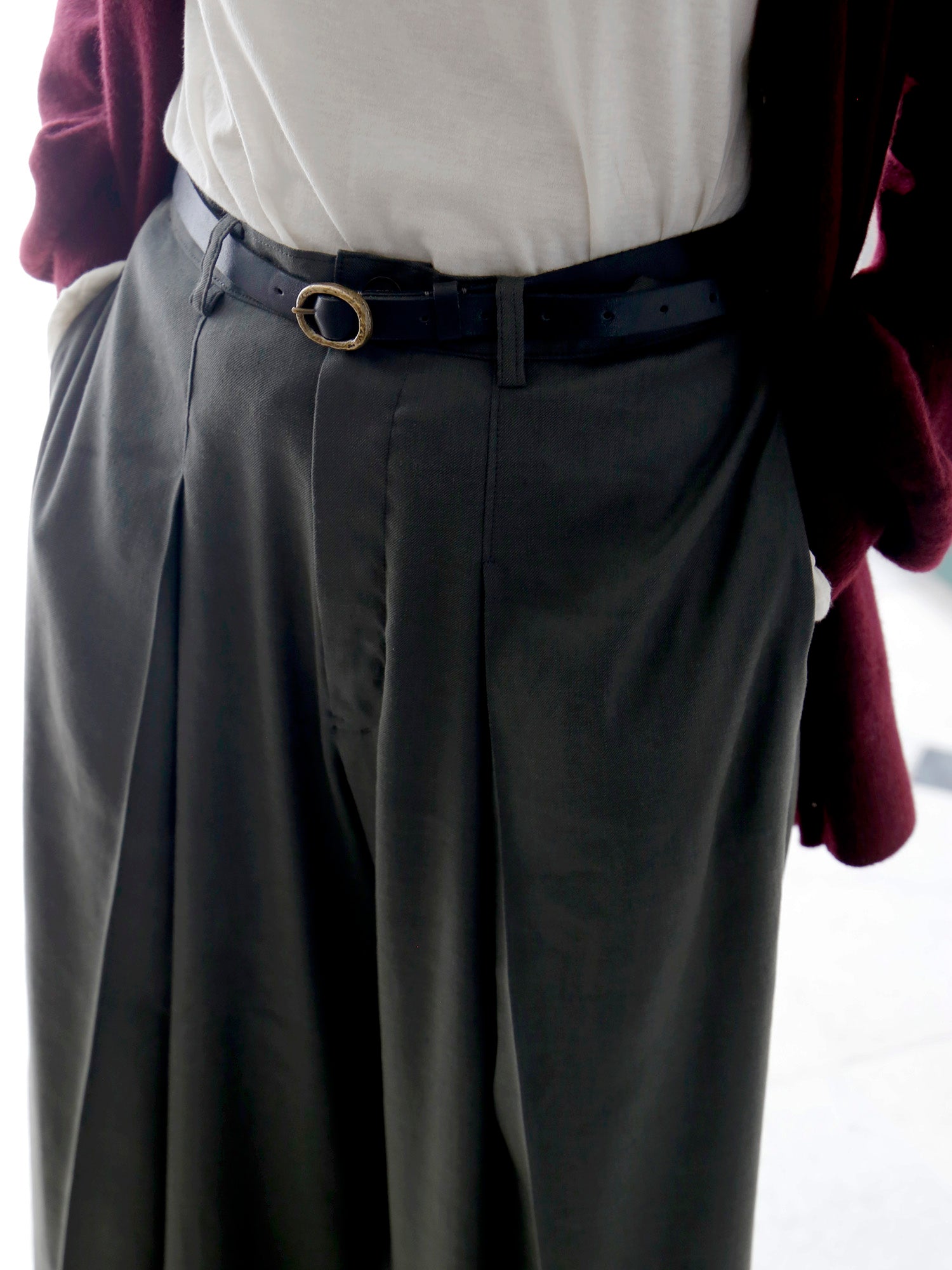 深く入ったワンタックが印象的なフルレングスのパンツ。