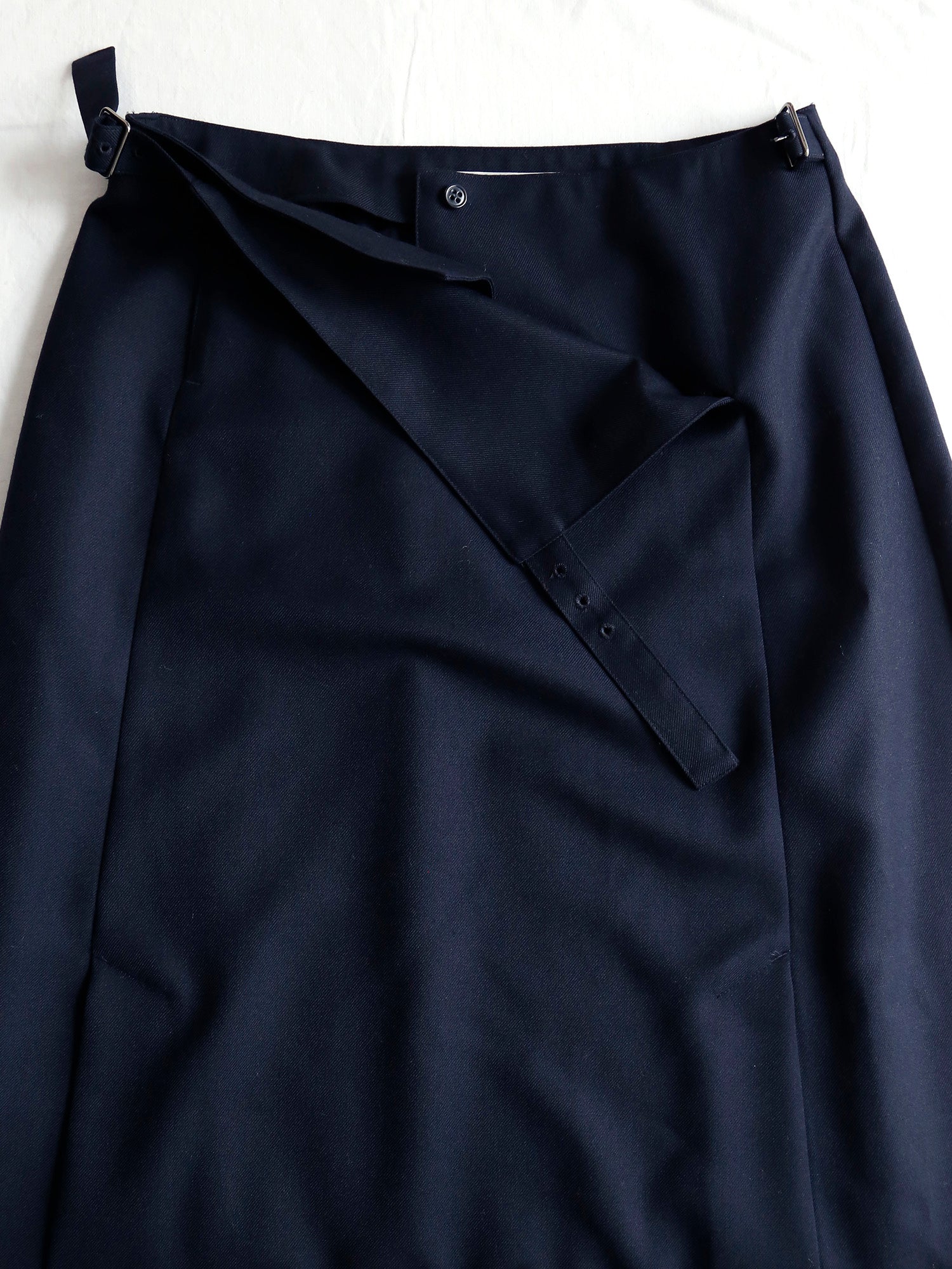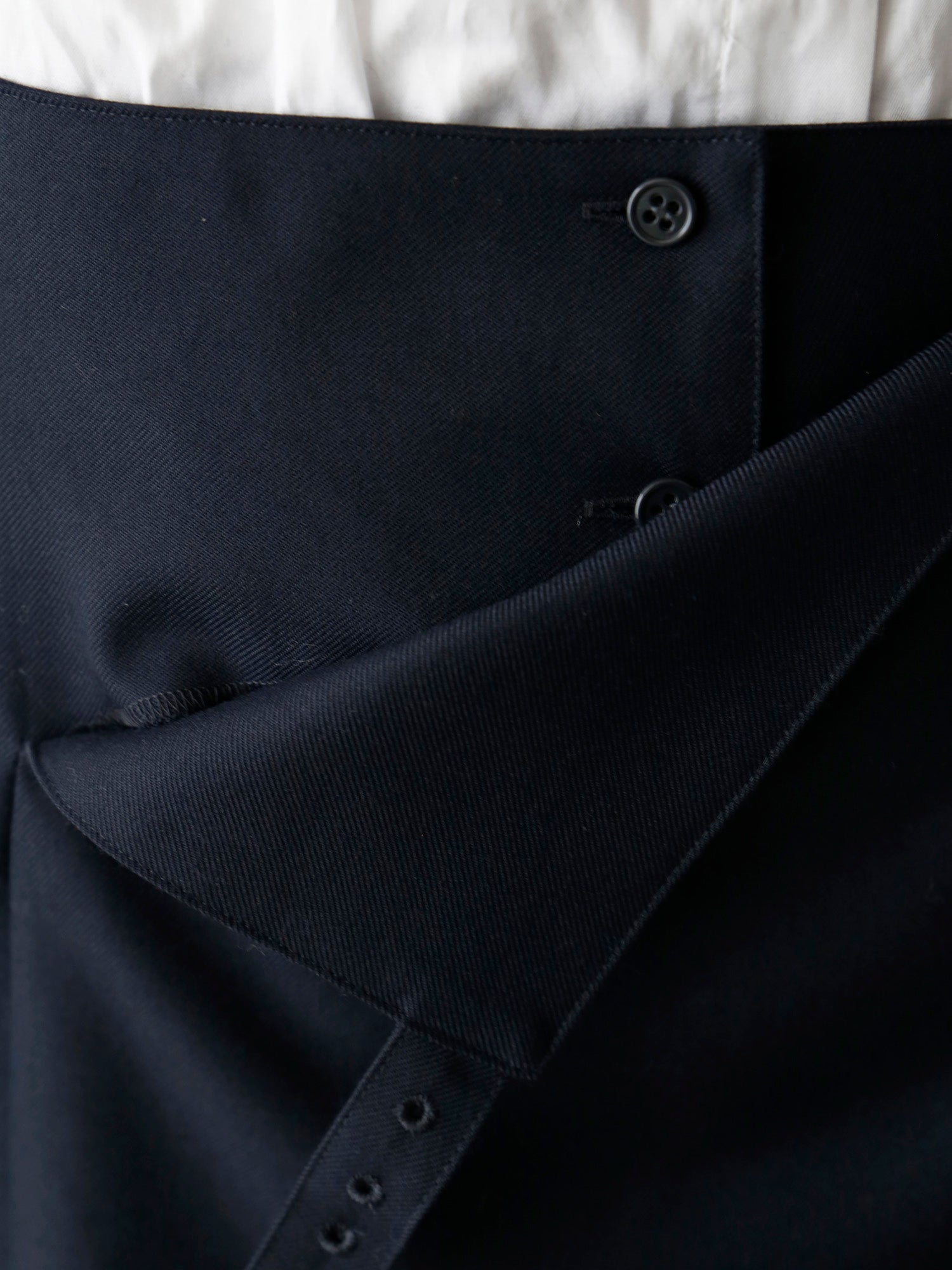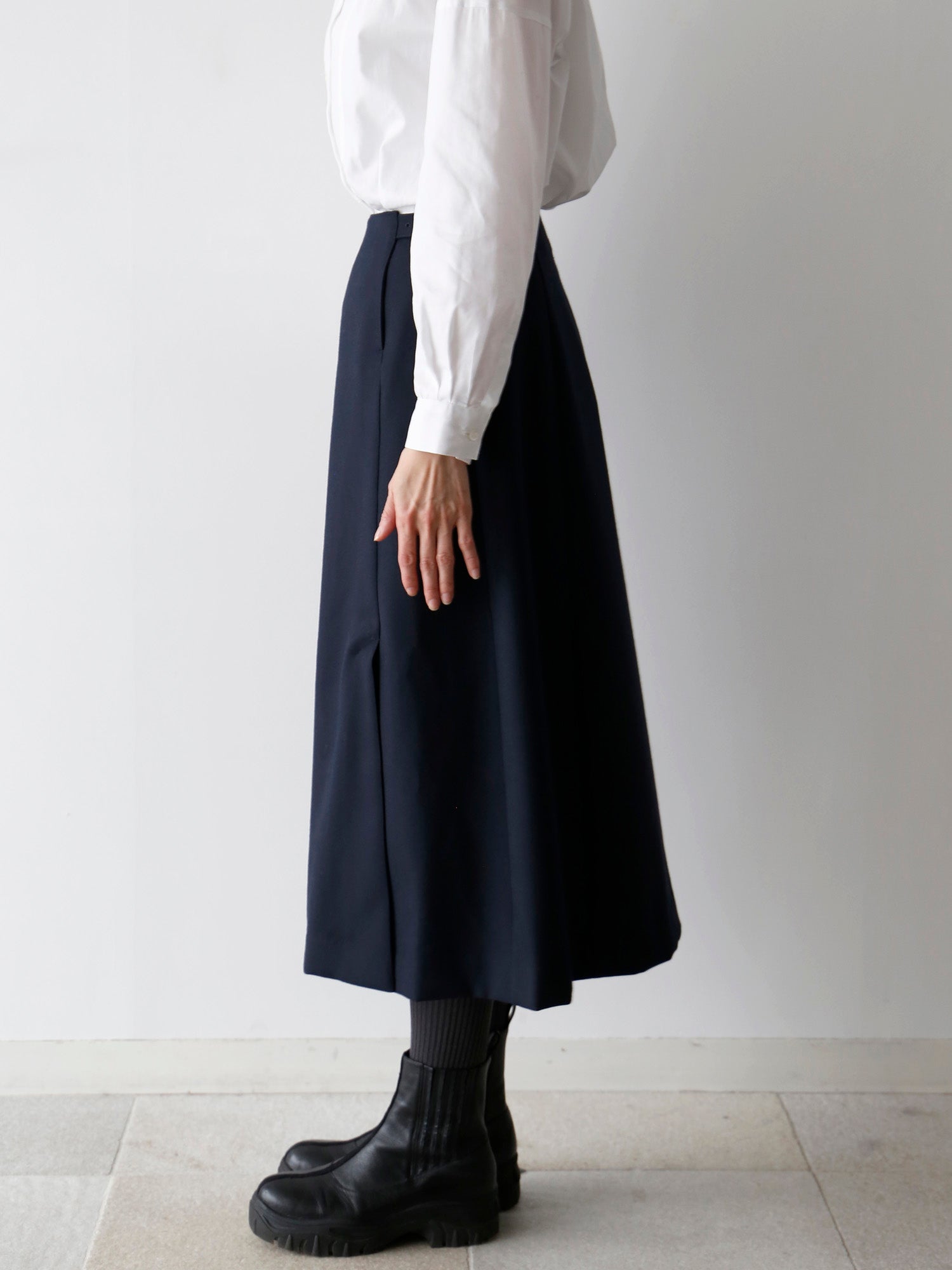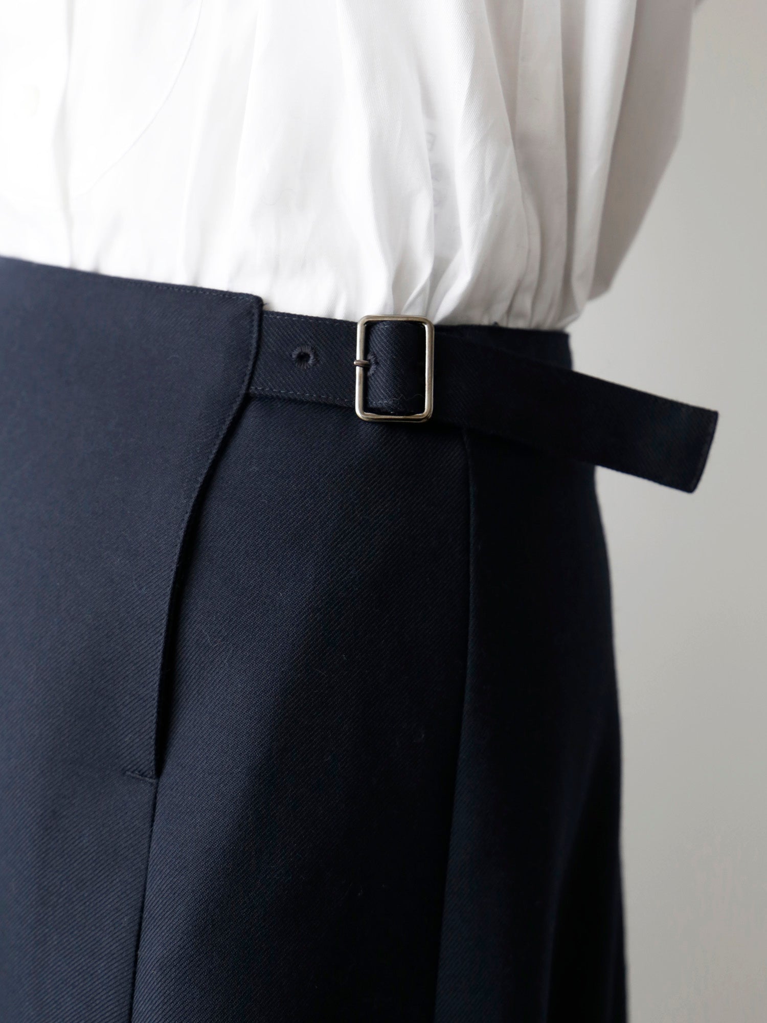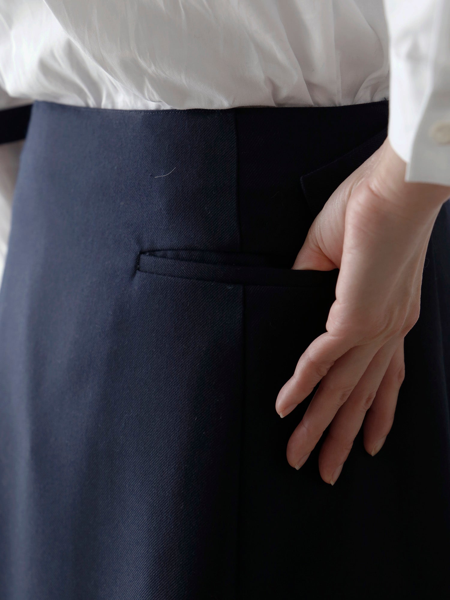 マリンテイストをさりげなく取り入れた、ウールツイルのスカート。