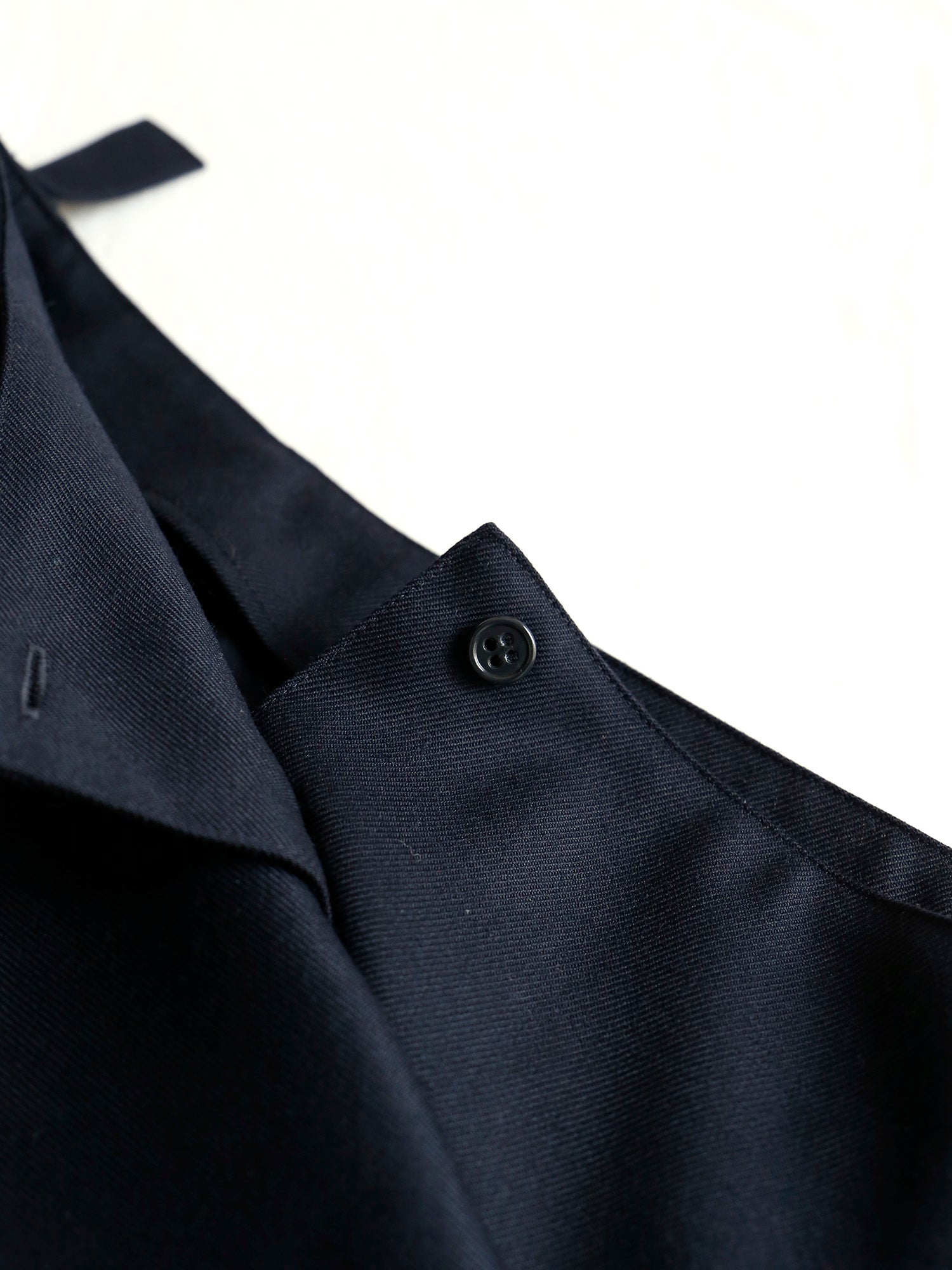 ウエストの両サイドにピン付きのバックル、バックルを開くと縦にボタンが並ぶ仕様。マリンパンツのディテールを感じるデザインが、着こなしにアクセントを加えます。