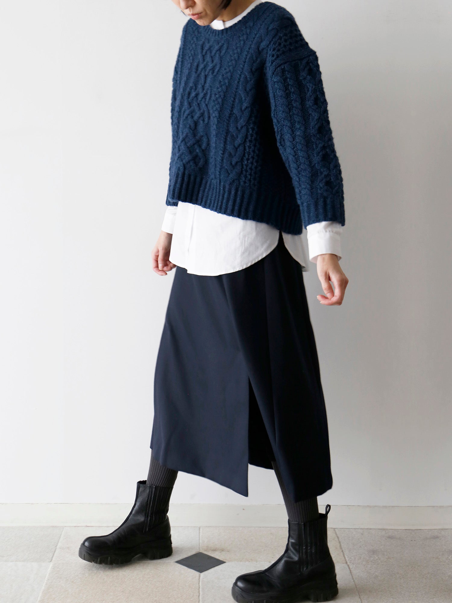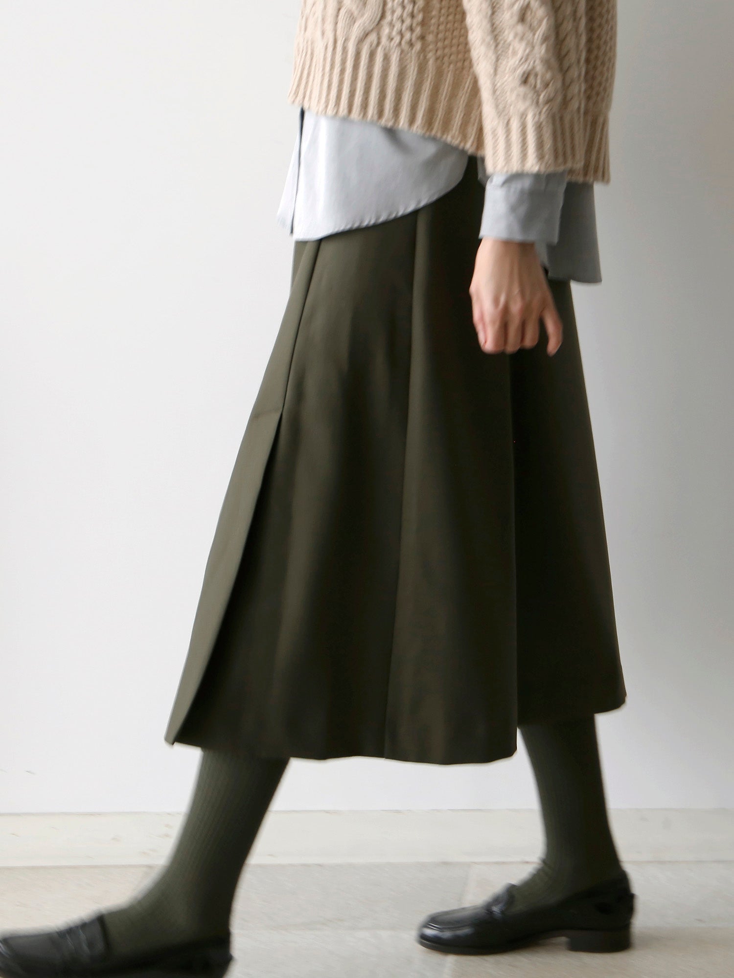 ブラウスをインしてベルトのデザインを見せれば、端正なラインが際立つ、スカートが主役になる着こなしに。あたたかなニットを重ねるなど、スタイリング次第で、春・秋・冬の3シーズン楽しめます。