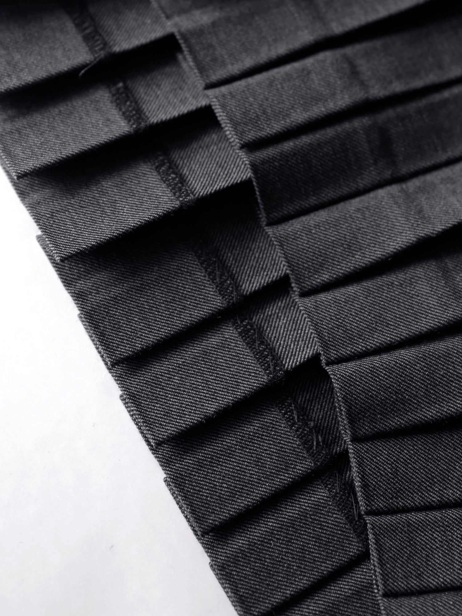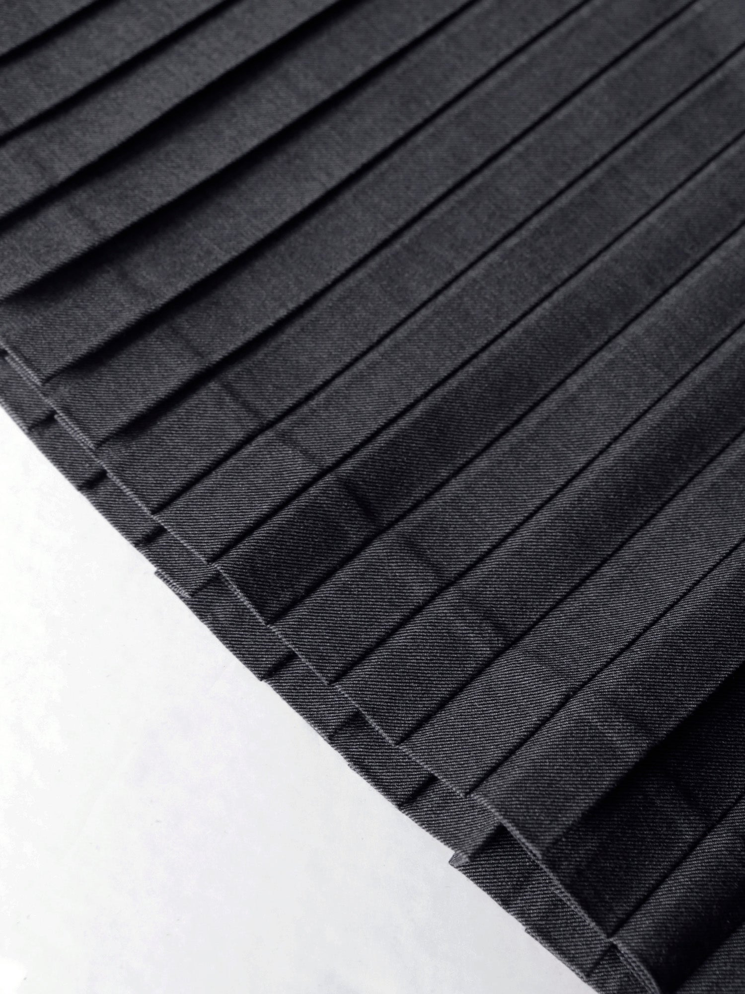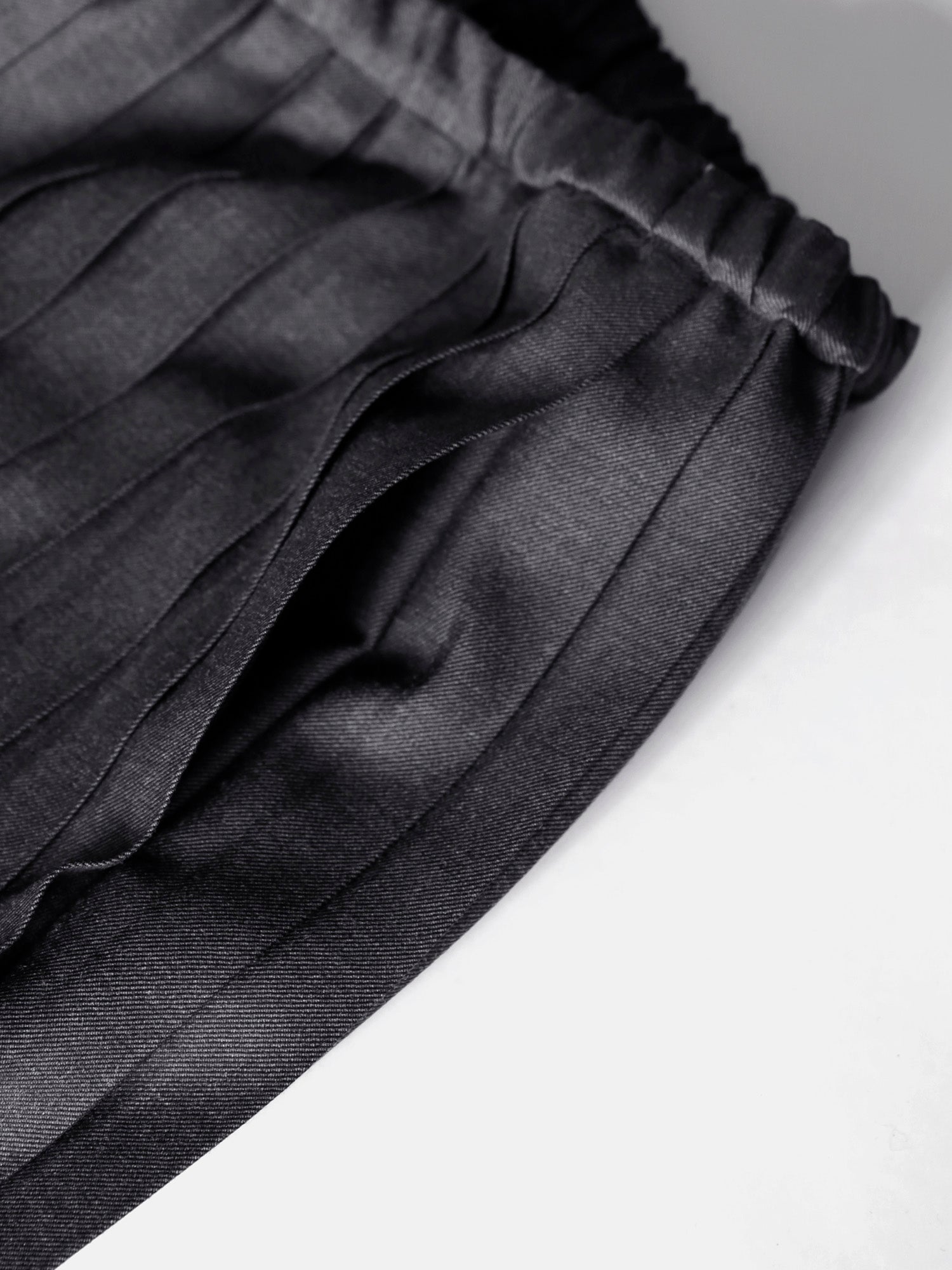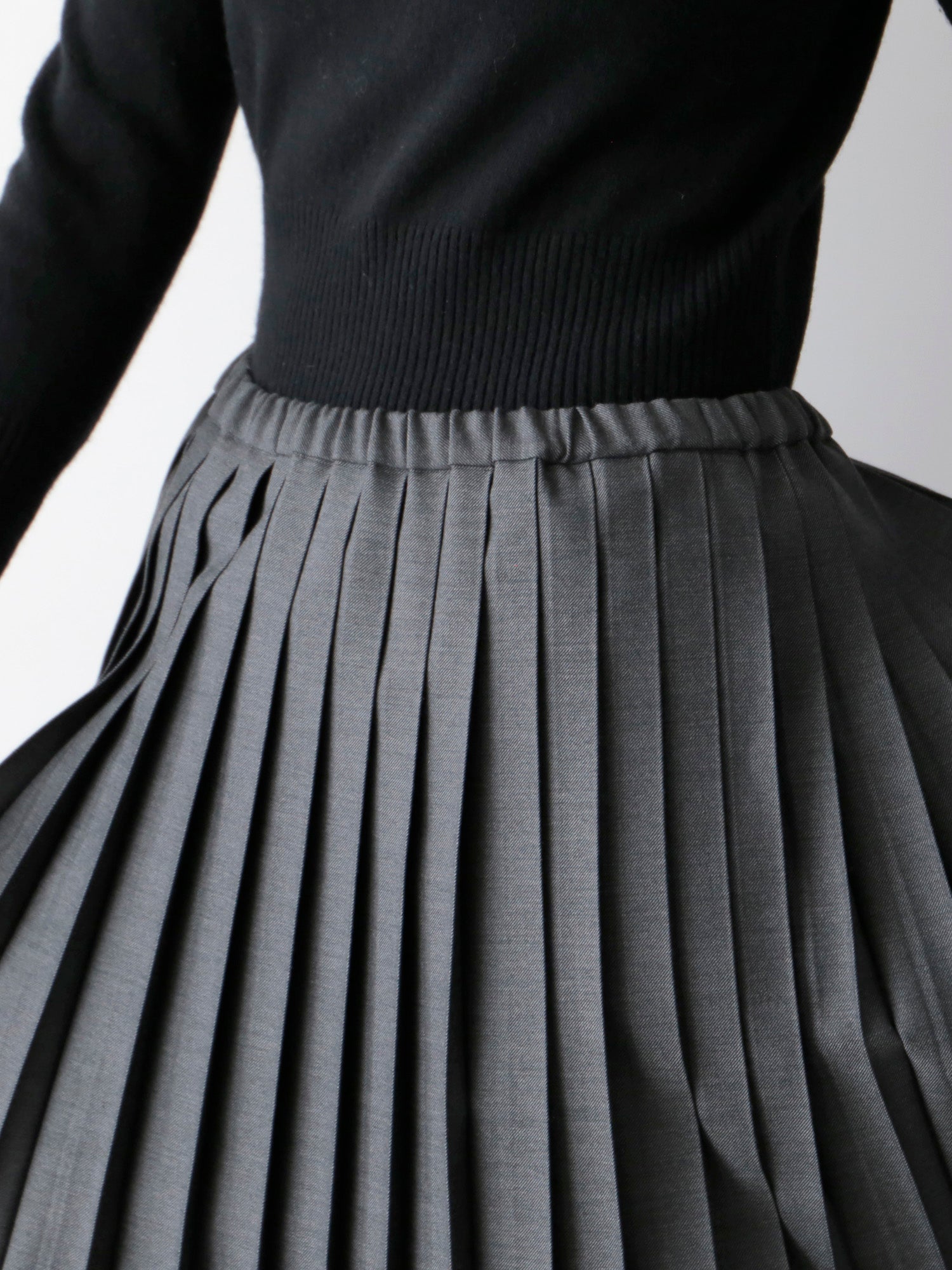 尾州の梳毛ギャバジンのほどよいハリと上品な艶感が、プリーツの端正な表情を際立たせます。