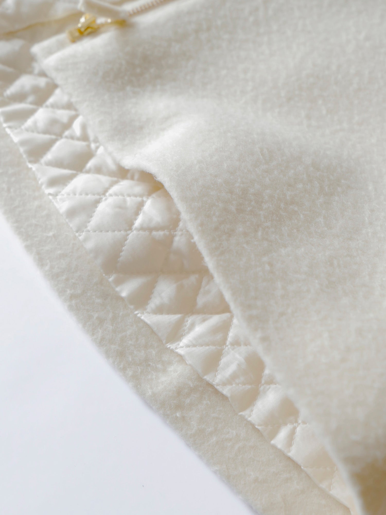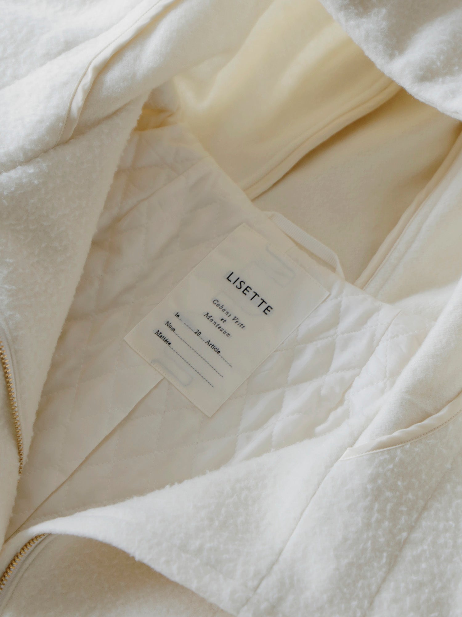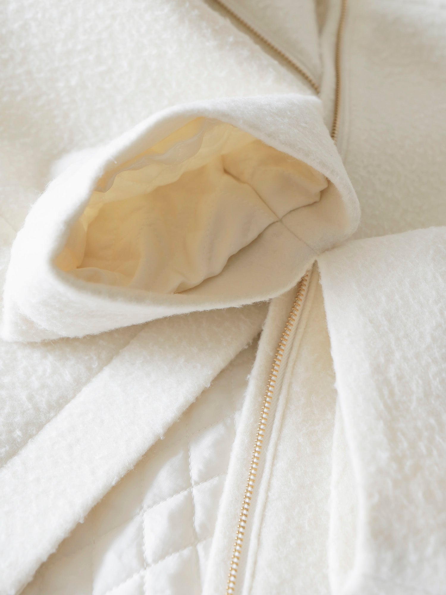 立体的なシルエットを美しく保つため、裏地はキルティング仕様にし、コート全体のハリとフォルムをしっかりと出せるように仕立てています。中わたが動かず均一に入り、あたたかさもより高い一枚です。