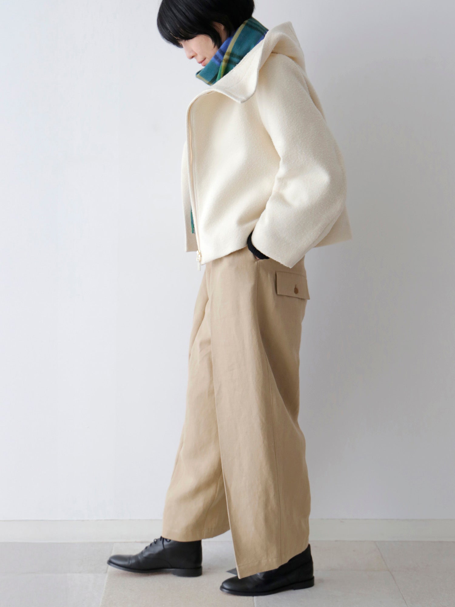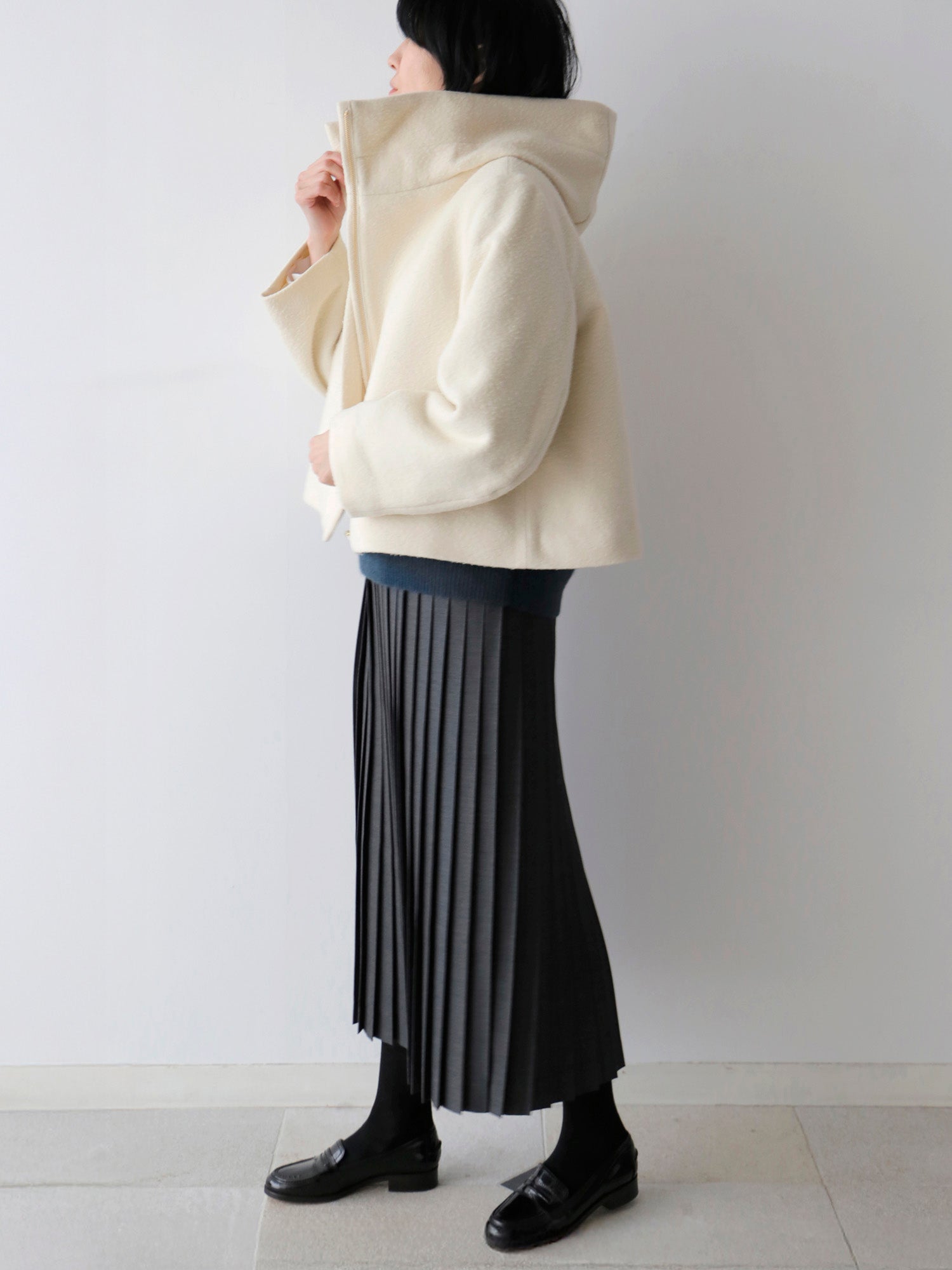 コンパクトな着丈でバランスが取りやすく、スカートにもパンツにも合わせやすい一枚。