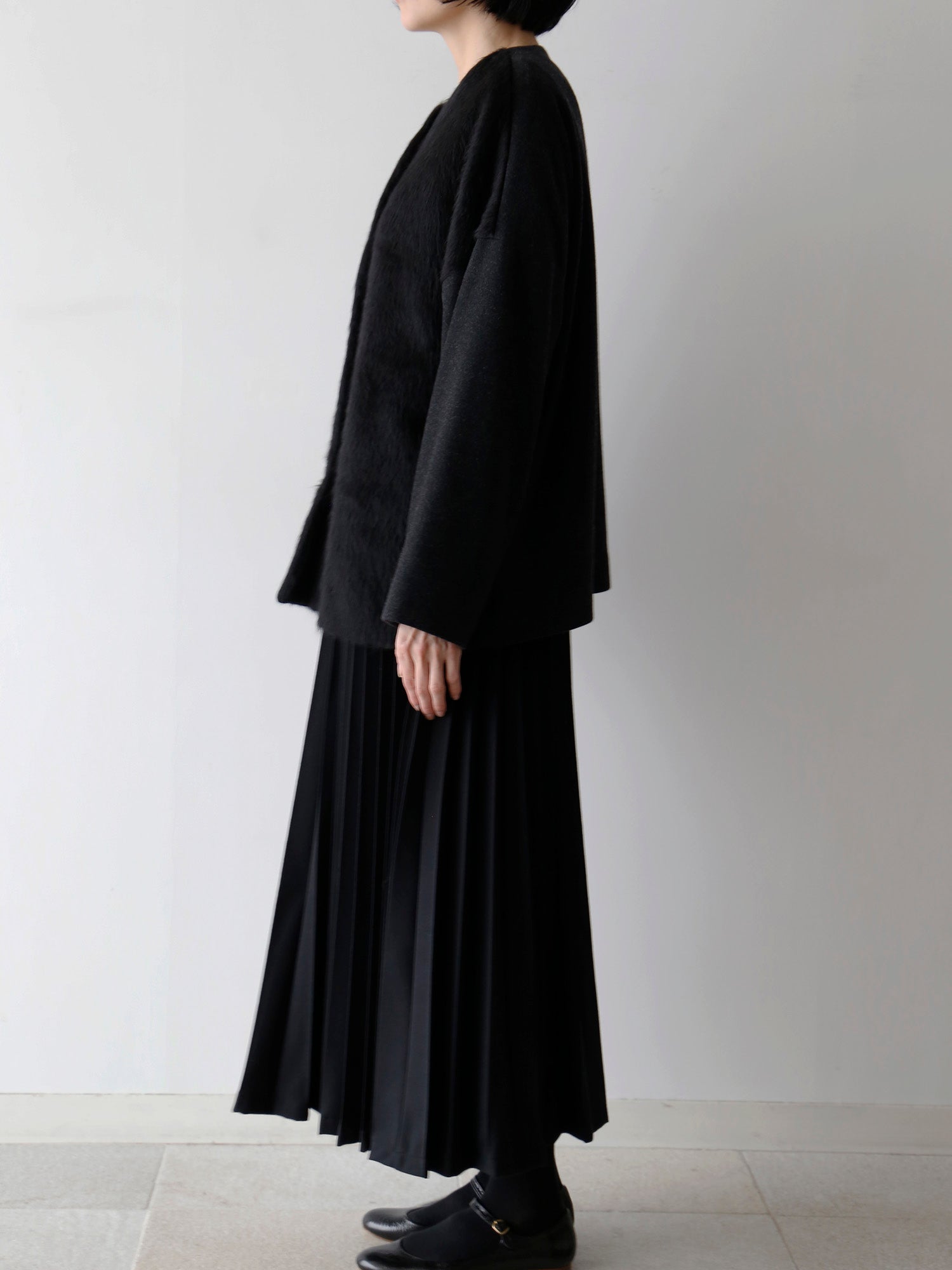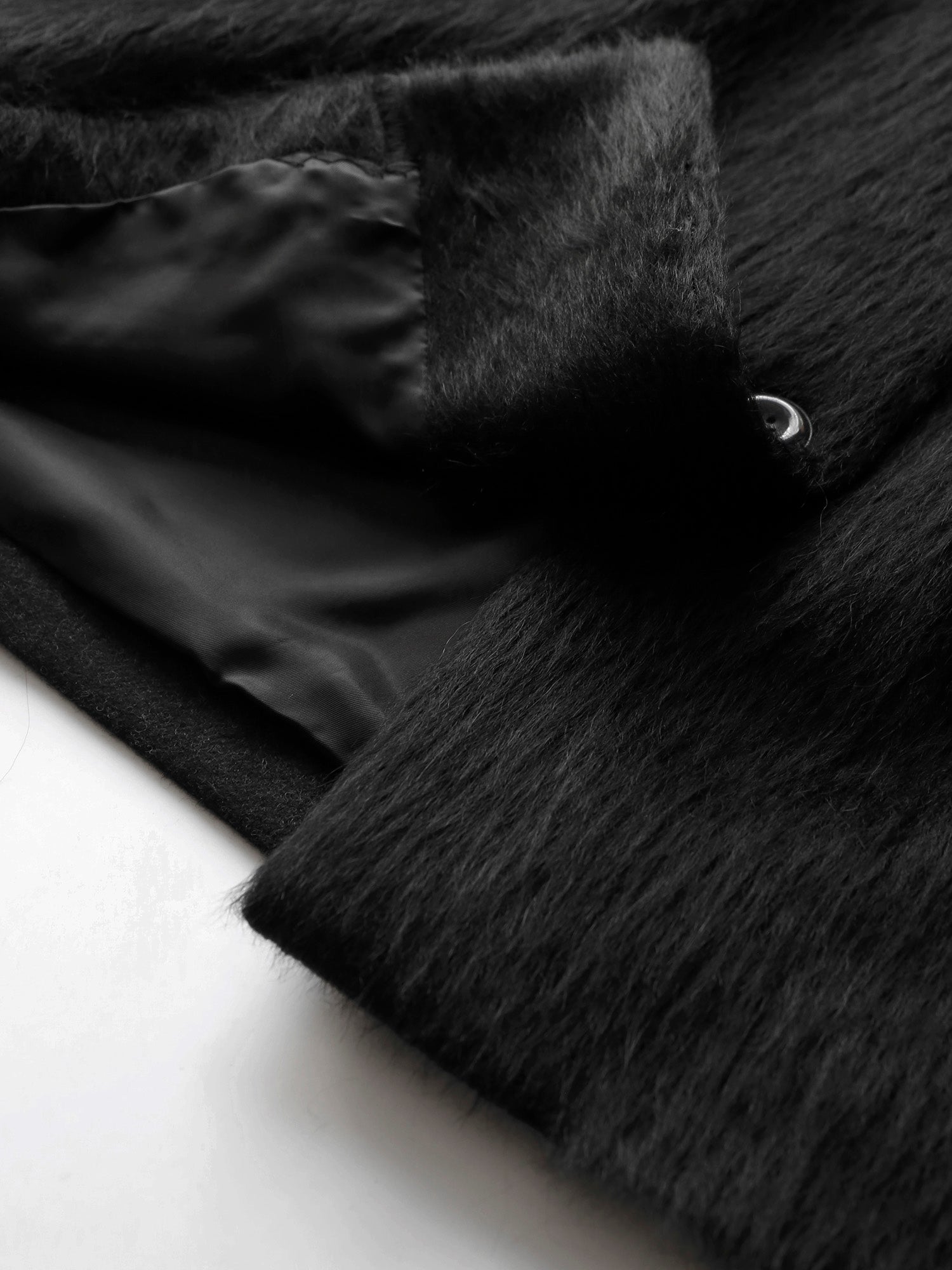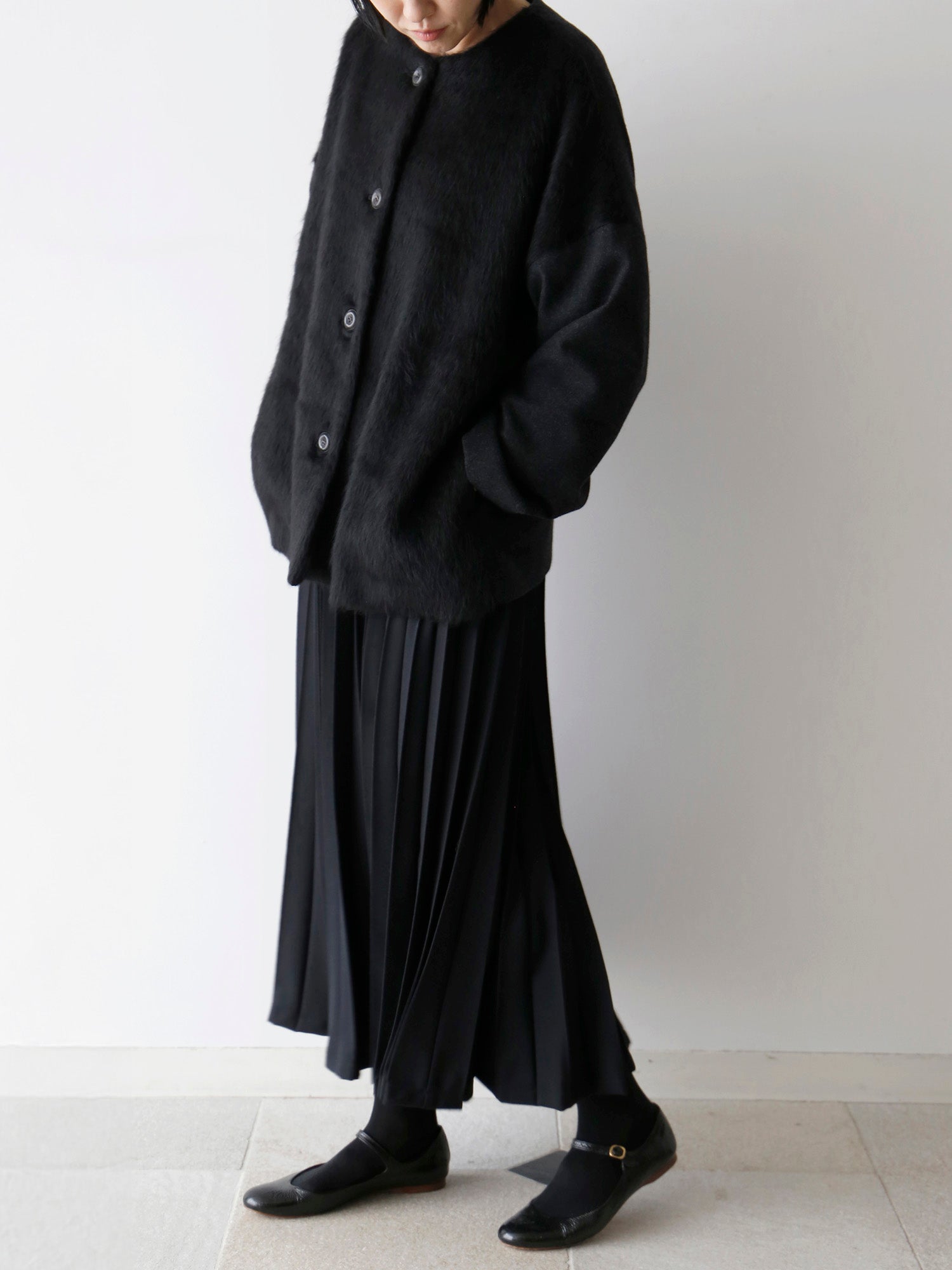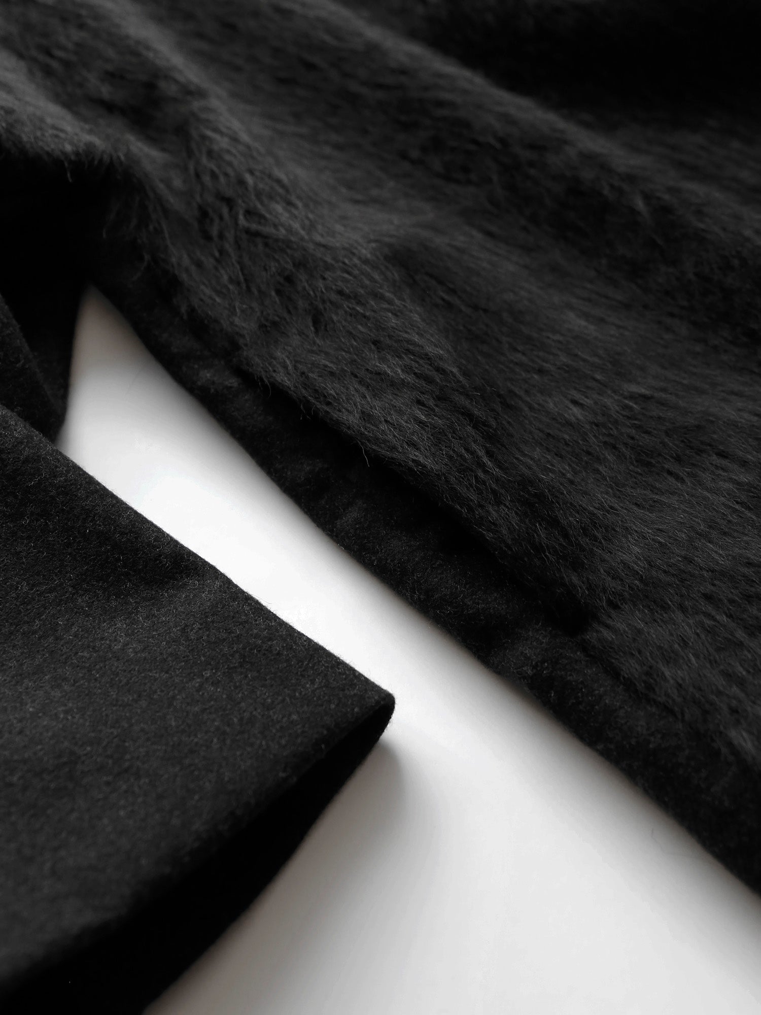 冬のシーズンモードを引き立てるシャギー素材は、程よい存在感がありながらも、ヒップにかかるほどの軽やかな丈感と着回しのきくブラックカラーで日常使いしやすいのも魅力。