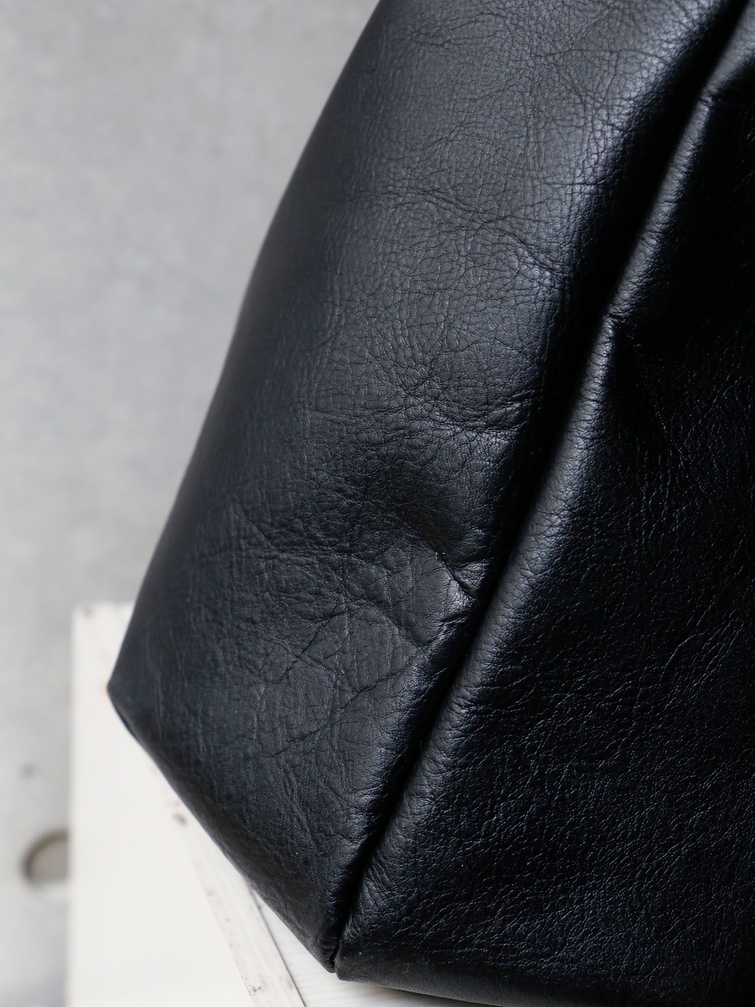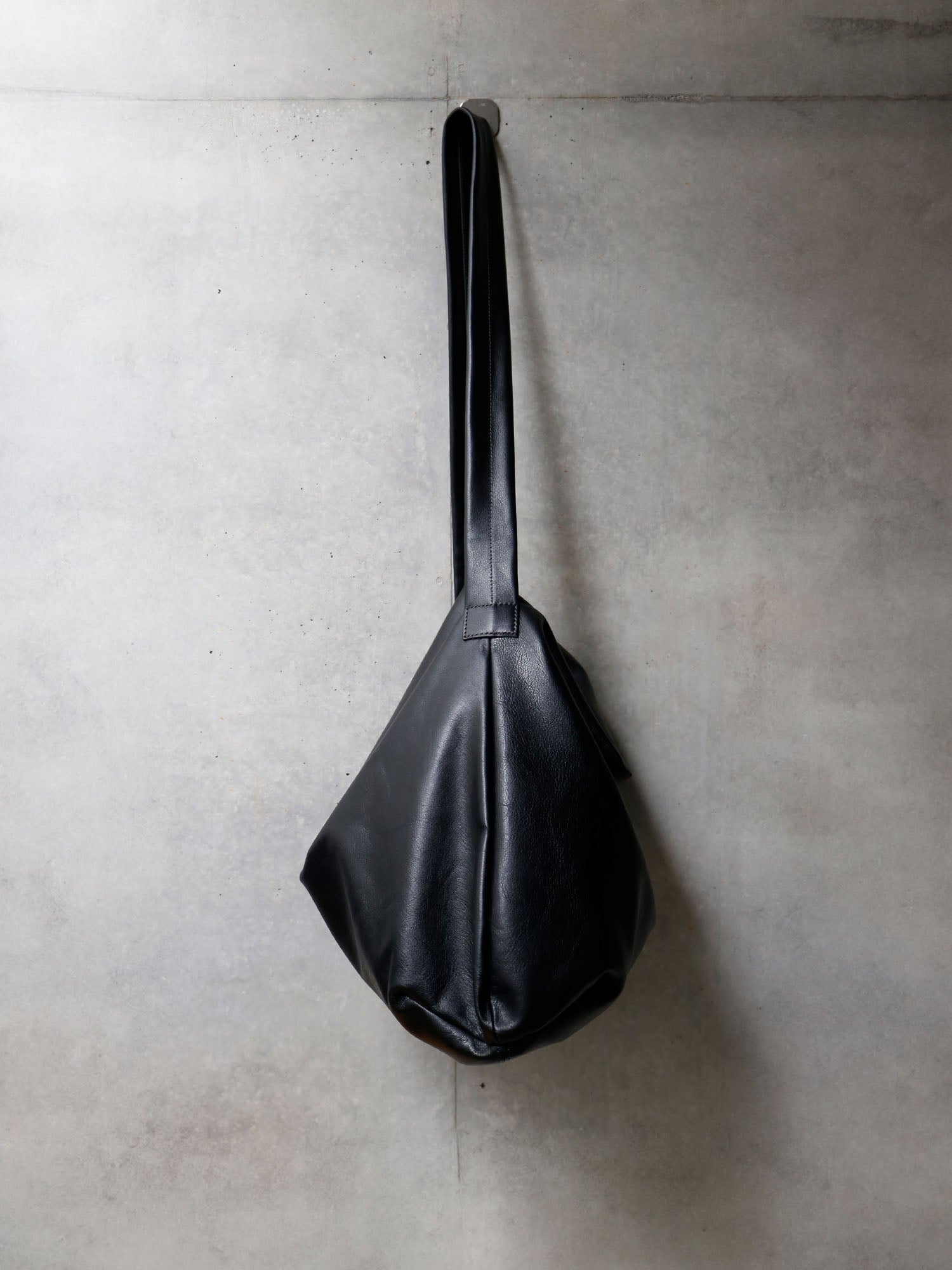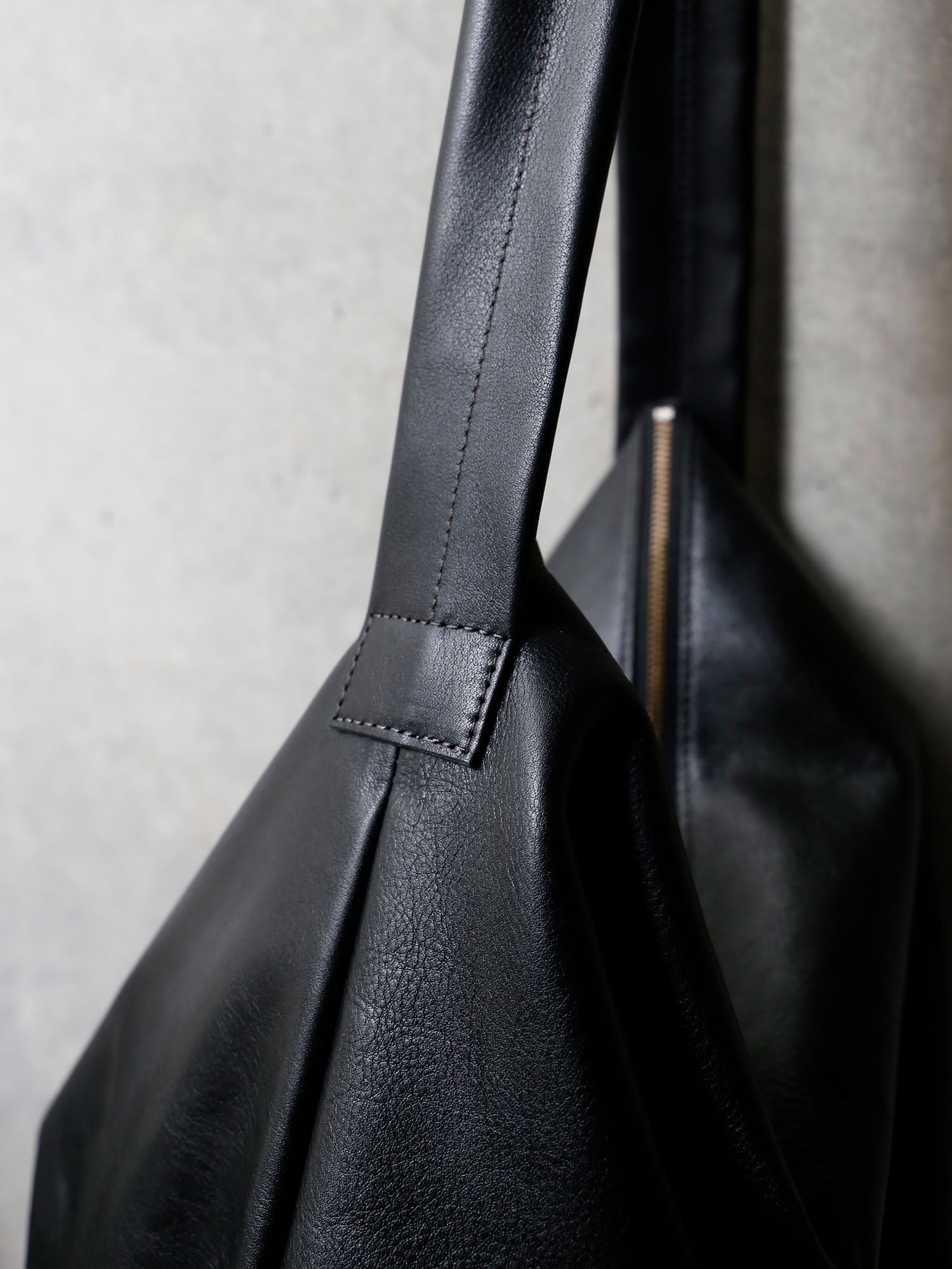 カジュアルな用途の多いワンショルダーを、黒のレザーでシックに仕上げました。ニュートラルで、装いやシーンの振り幅が広いバッグです。