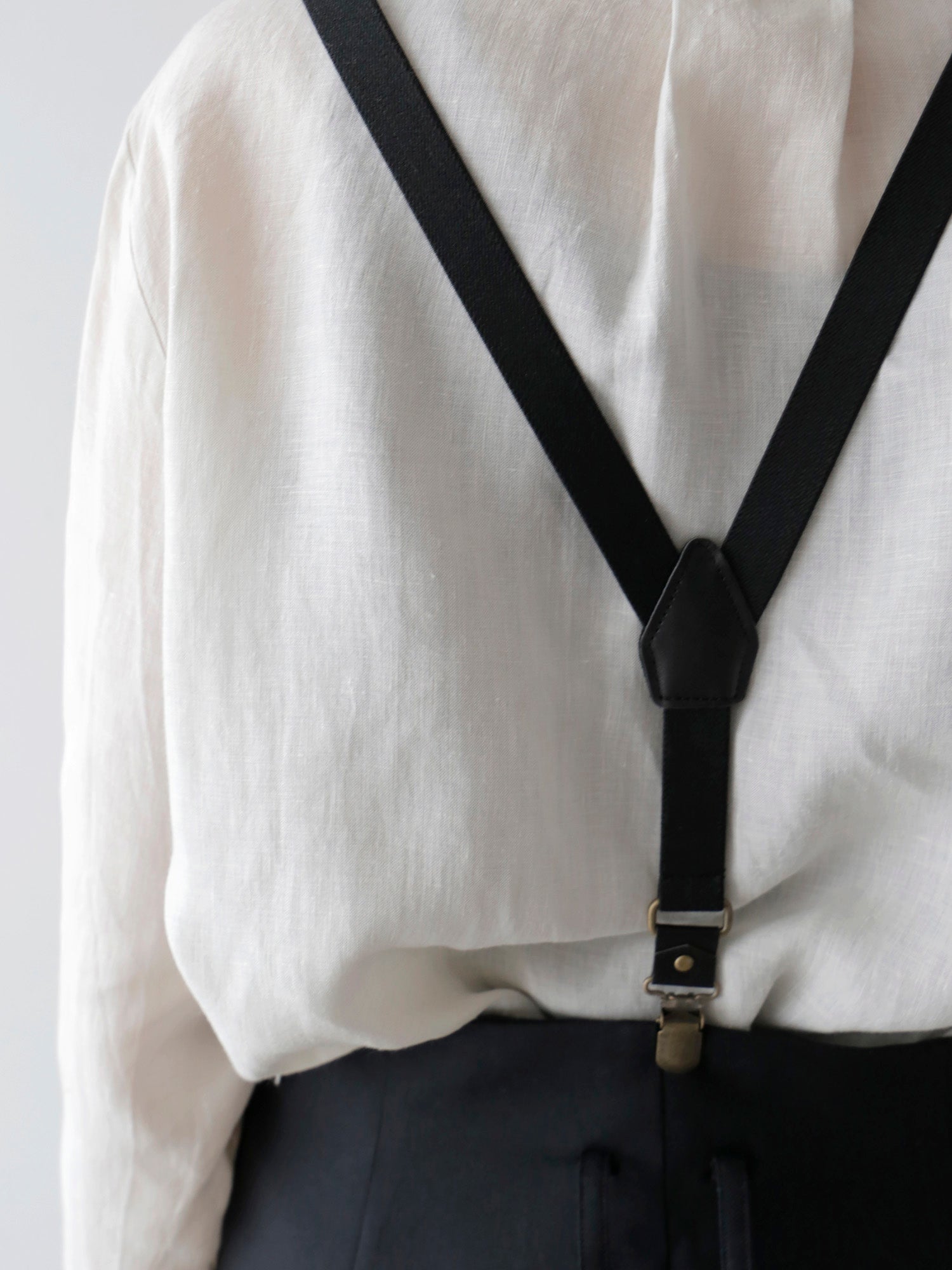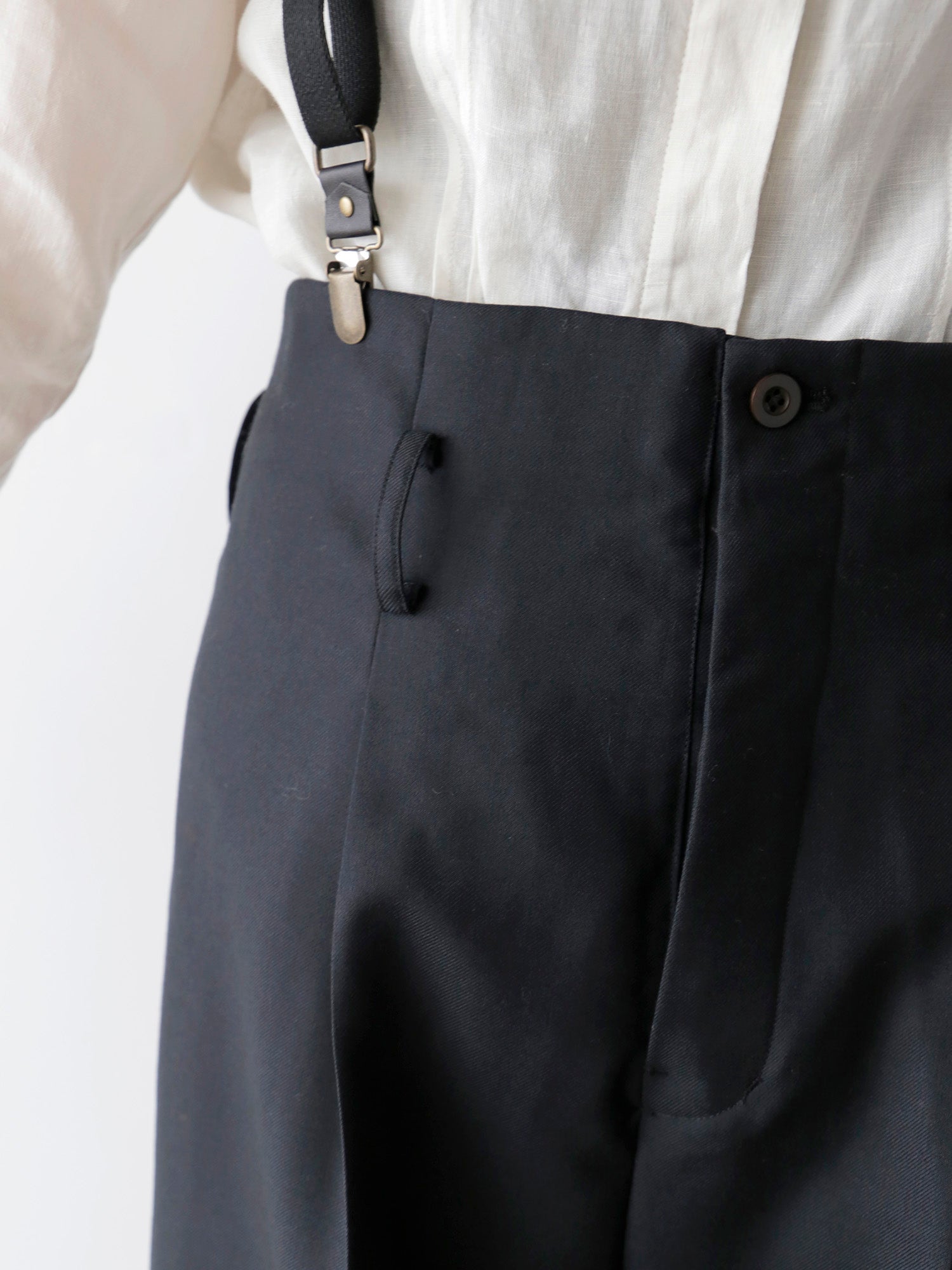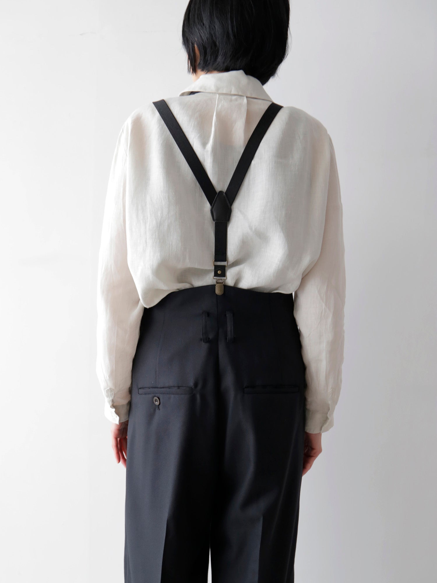 サスペンダーはウエストを適正な位置で安定させ、ボトムのシルエットをより美しく見せてくれるアイテム。