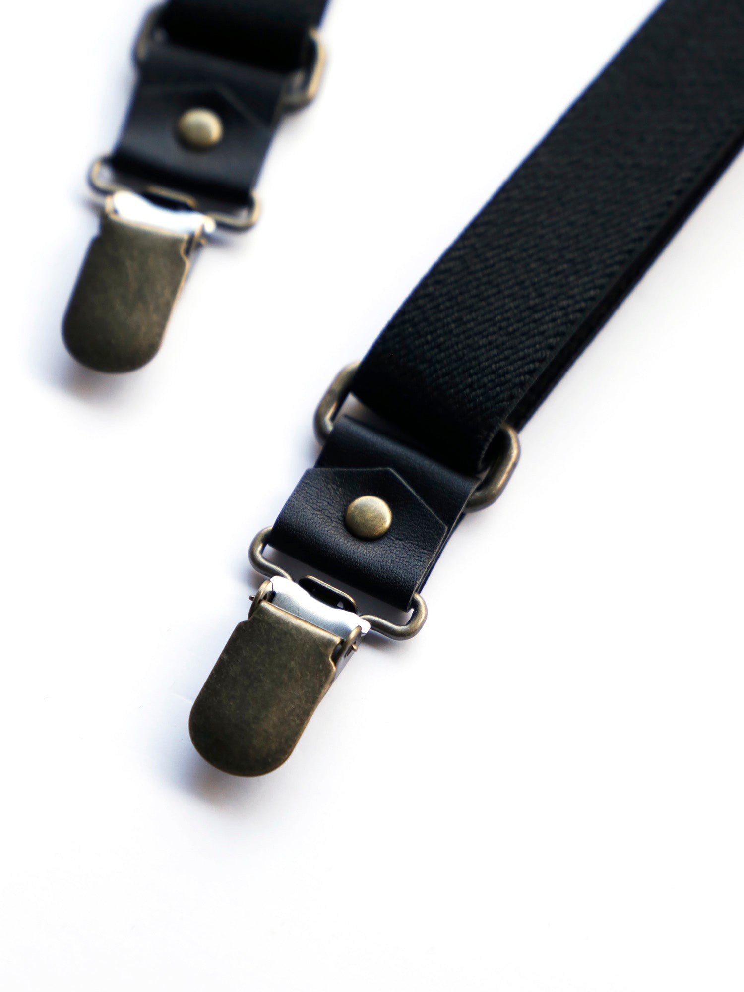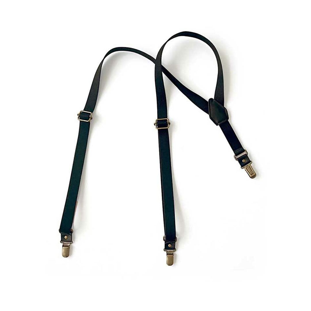 経年変化を楽しめる牛革と真鍮を組み合わせた、クラシックな雰囲気のサスペンダー。