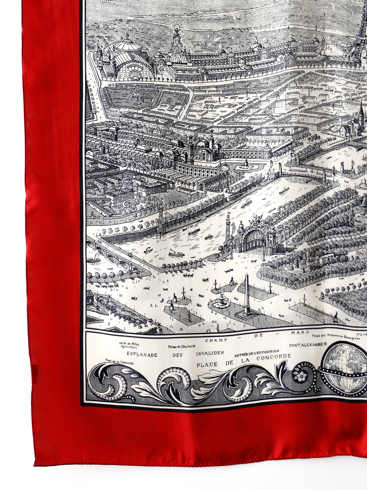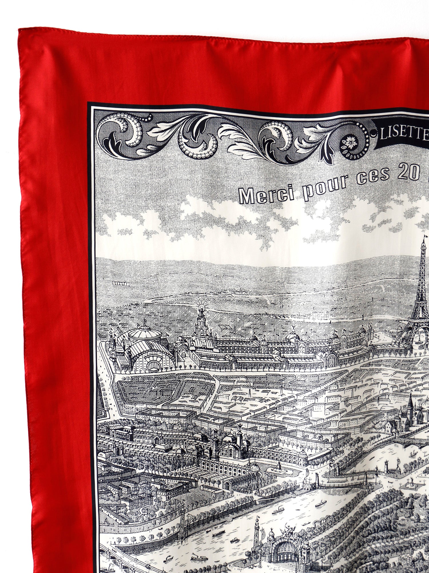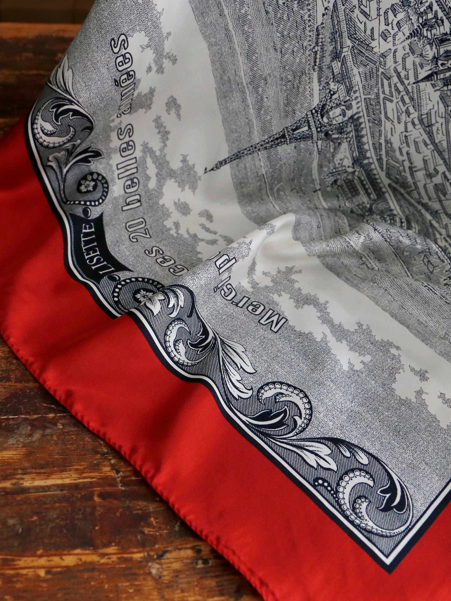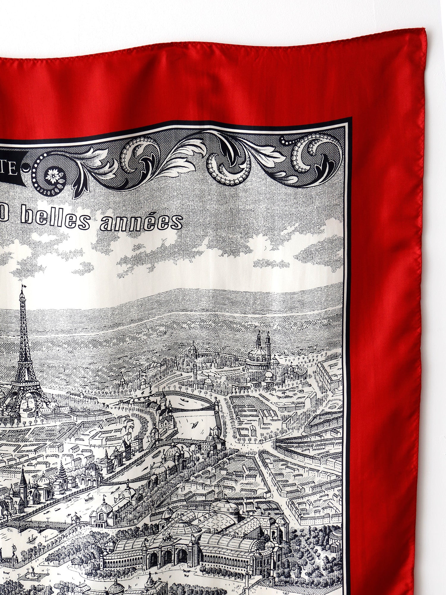 縁取りには、建設当時のエッフェル塔を思わせるルージュの色を。装いに華を添え、首元に結ぶだけで洗練された印象に仕上がります。