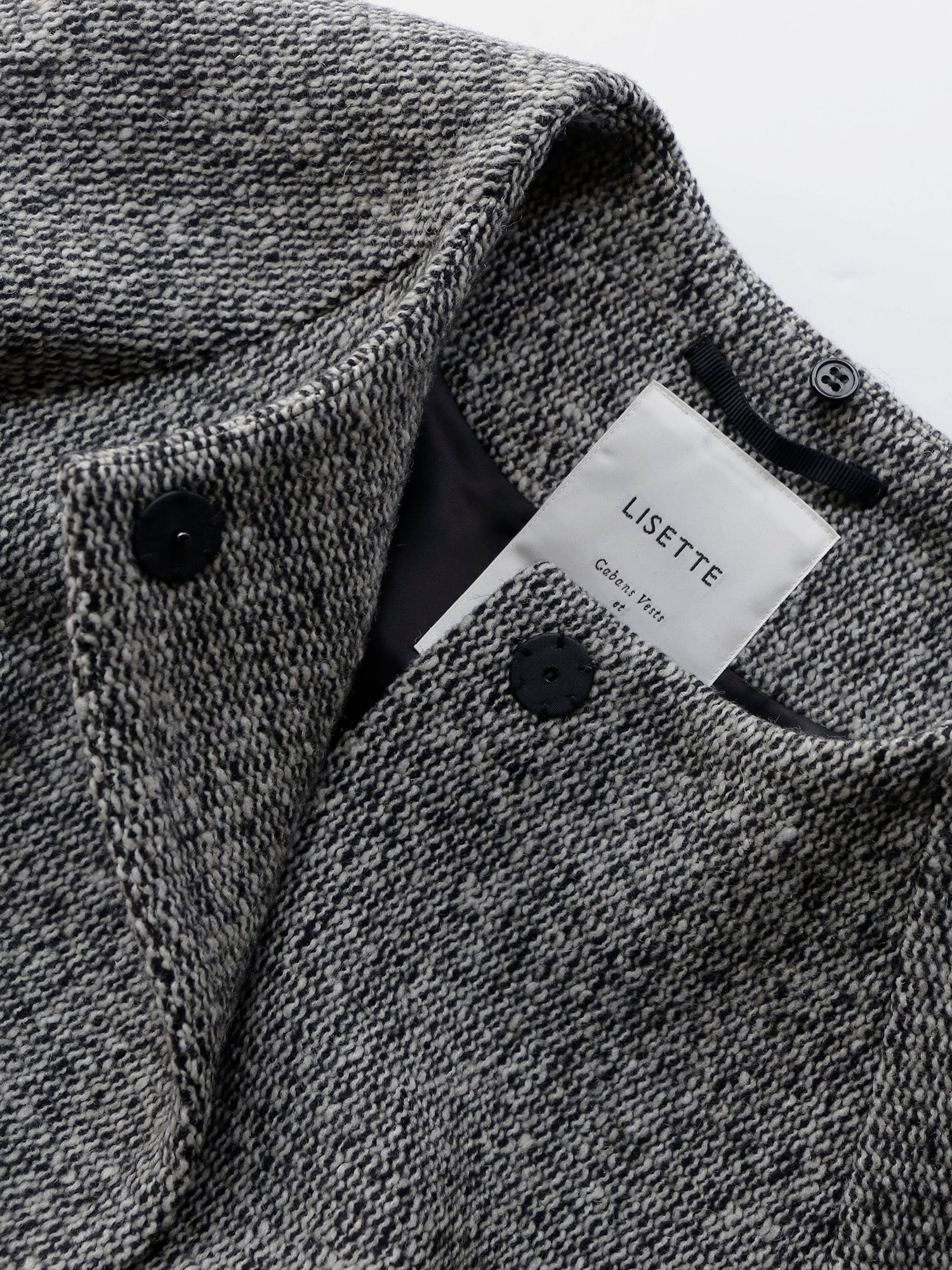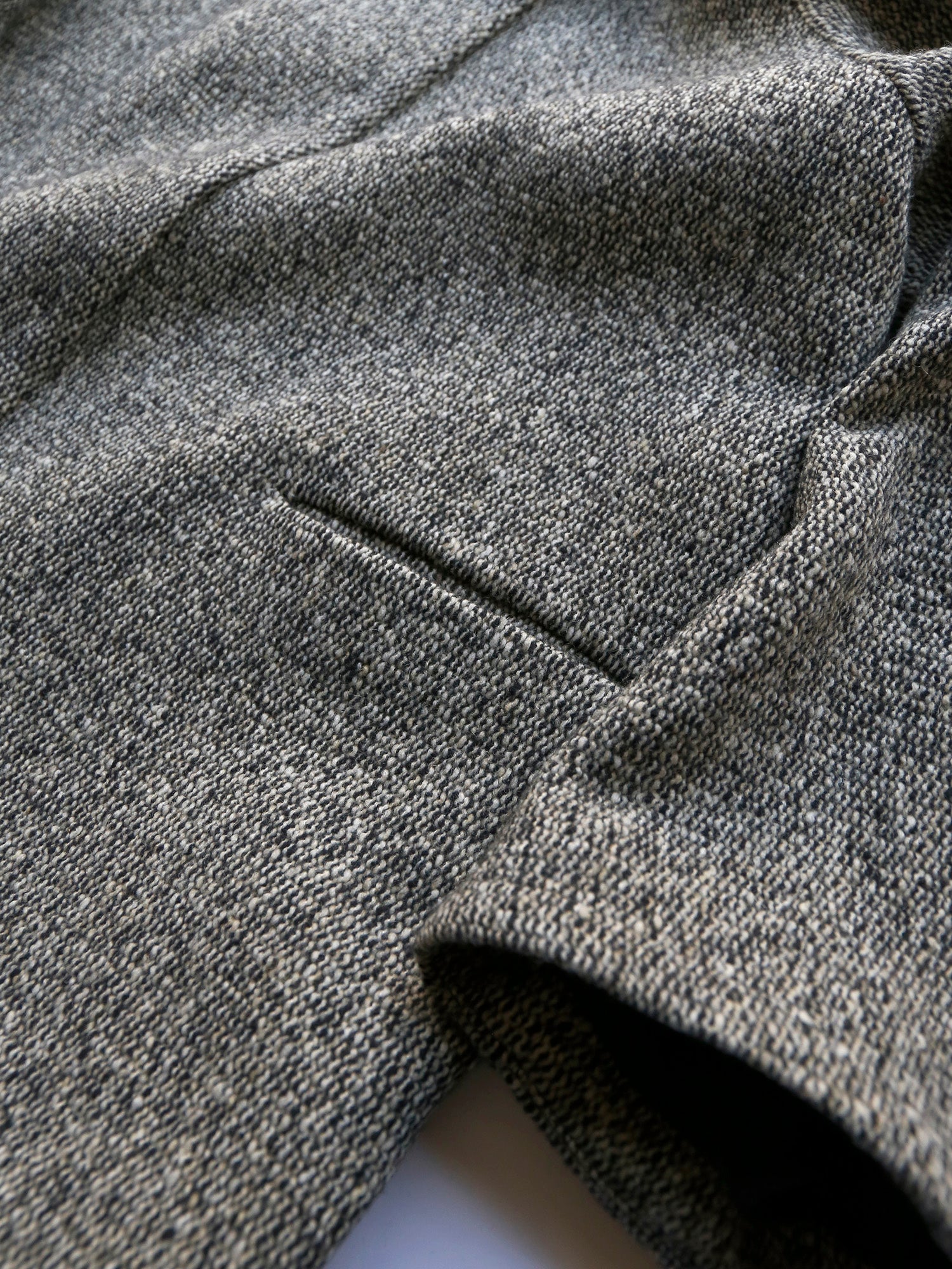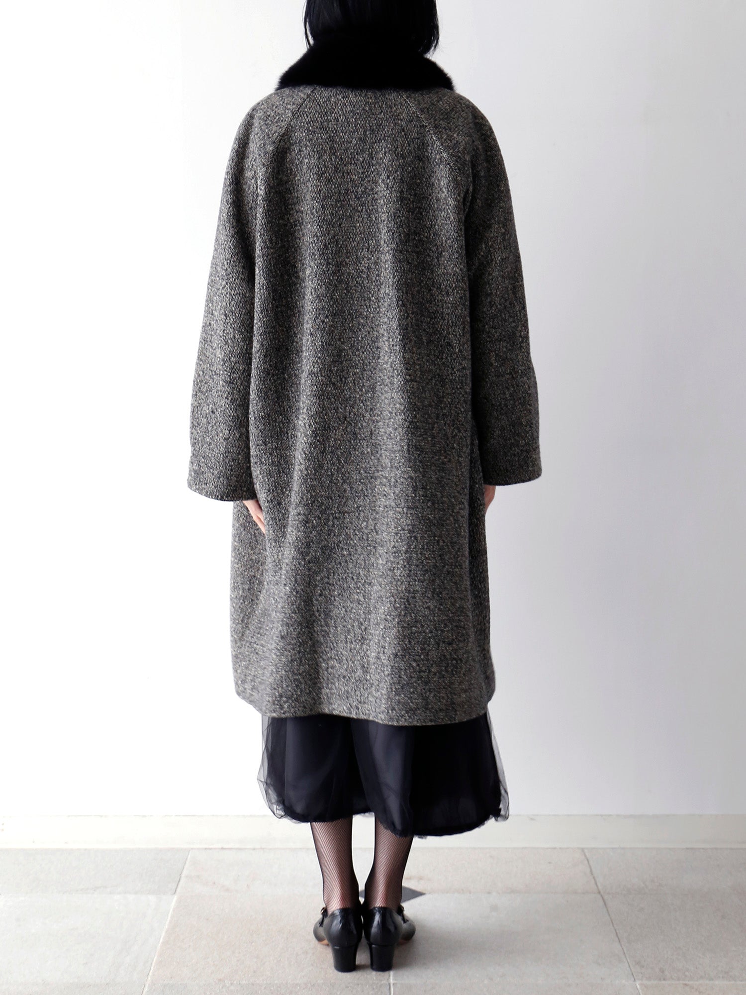 上質なループヤーンを使用したブークレ地は、軽くてあたたか。繊細な杢調の表情が、奥行きのあるグレーを生み出しています。