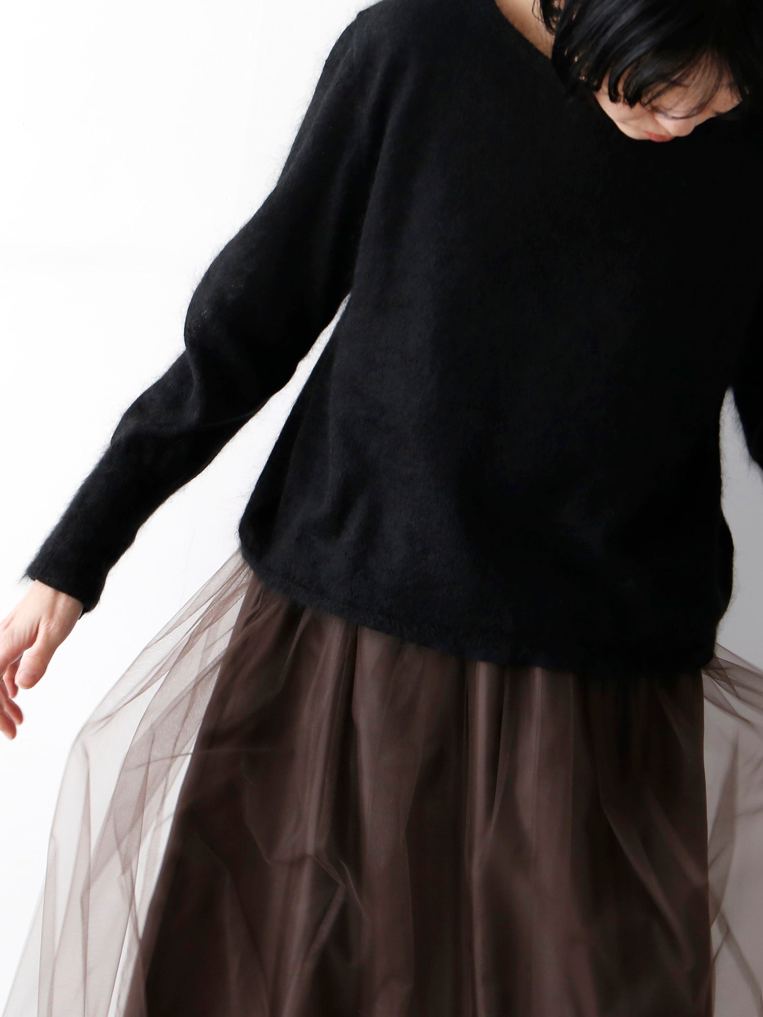 空気をふくんだような軽やかな質感で、薄手でも自然なあたたかさを感じられるのがキッドモヘヤならでは。