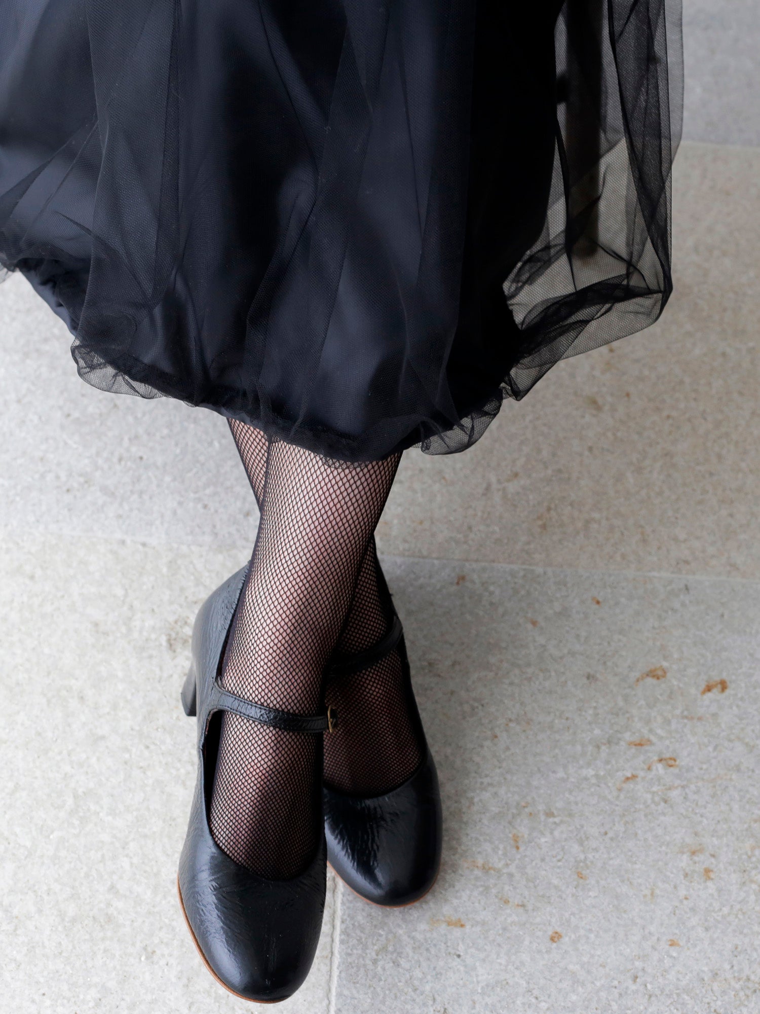 今回《ノエリア》に使用したチュールは、オーセンティックなフランス製のハチの巣チュール。六角形の網目で通常のチュールよりも網目が細かく、肌に触れたときのやわらかさが特徴。