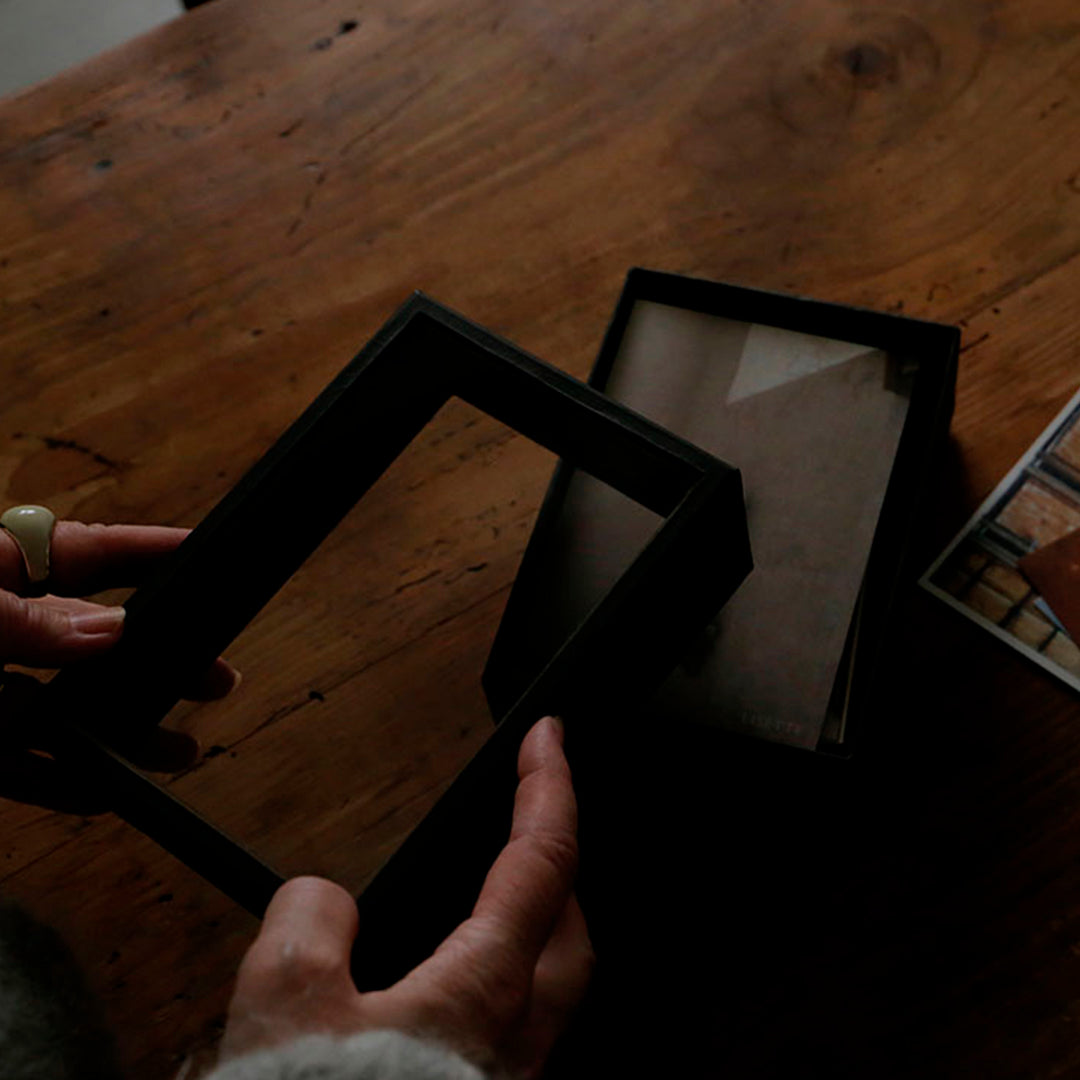 裏には金具がついており、壁にかけて飾ることができます。ブローチだけでなく、ポストカードや手紙、写真などをストックする箱としても。