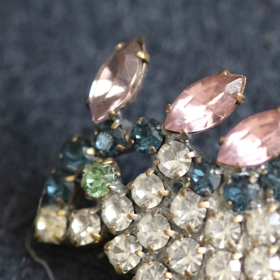 そのあと、金属にしてラインストーンをひとつずつはめ込み、ブローチピンをろう付けして完成します。
