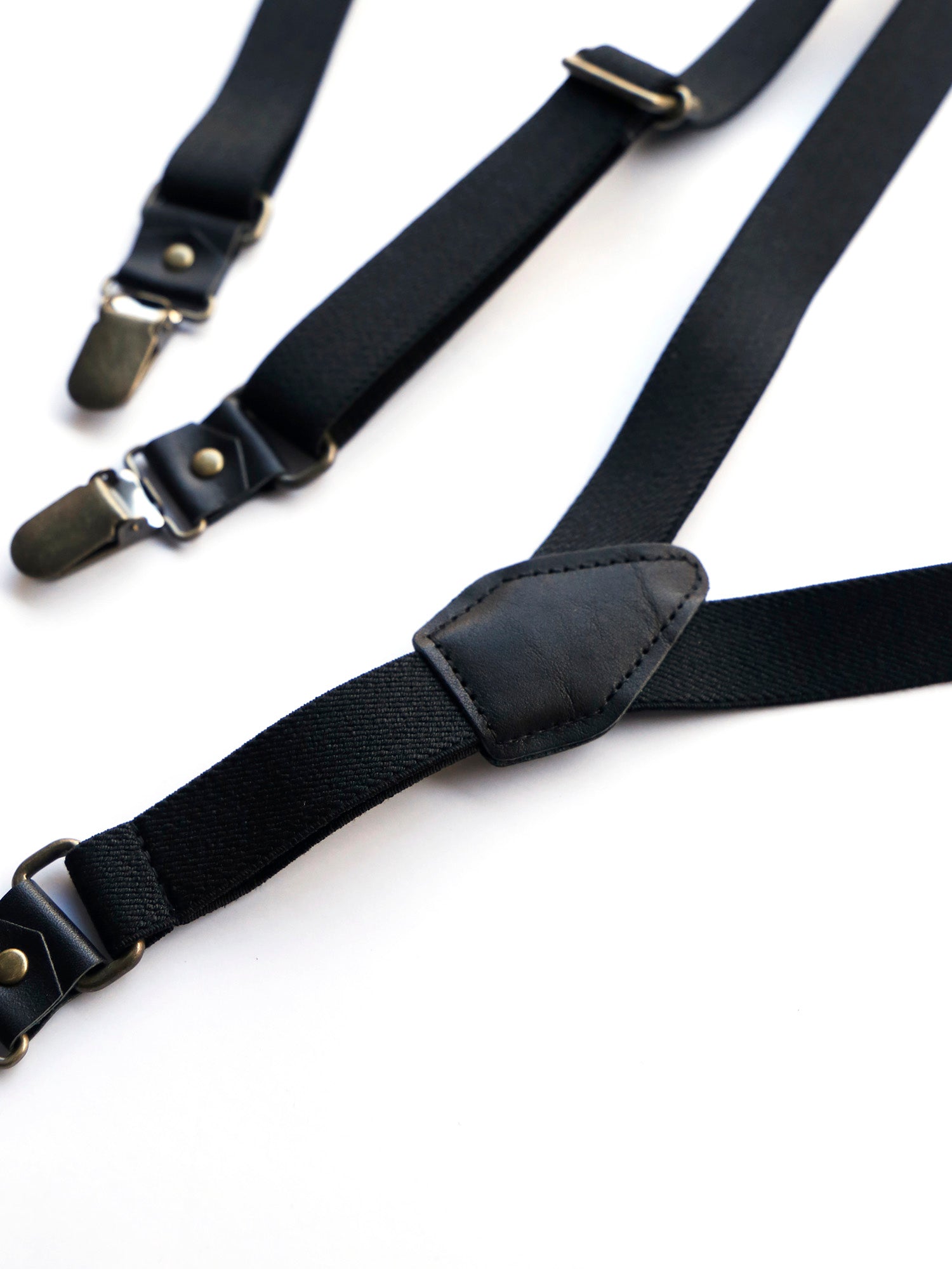 経年変化を楽しめる牛革と真鍮を組み合わせた、クラシックな雰囲気のサスペンダー。