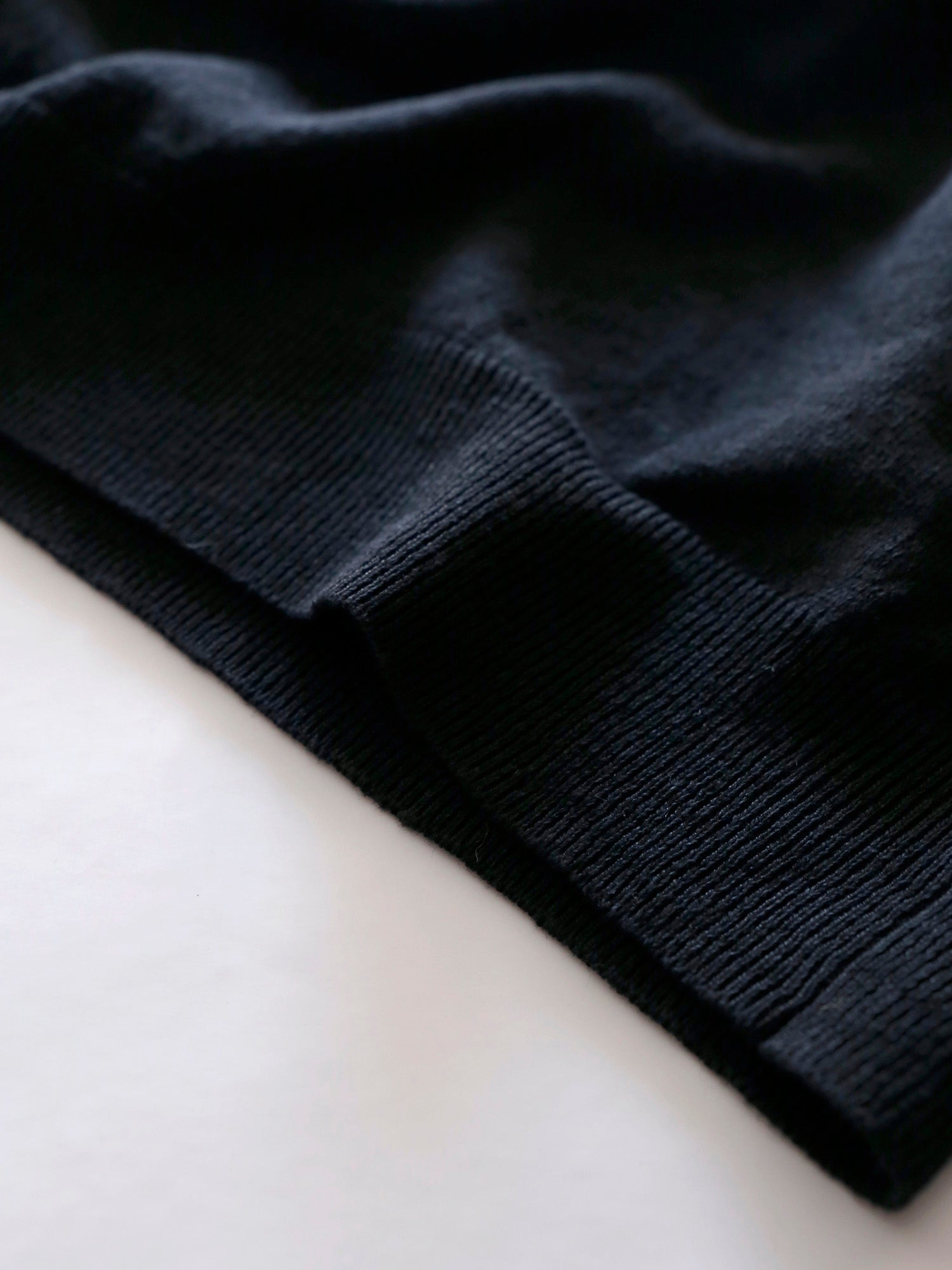 袖口と裾のリブは、あまり絞りこまずに付けることで、ストレートなシルエットに。裾や袖口がキュッと締まらず、全体にゆとりのあるバランスに仕上げました。