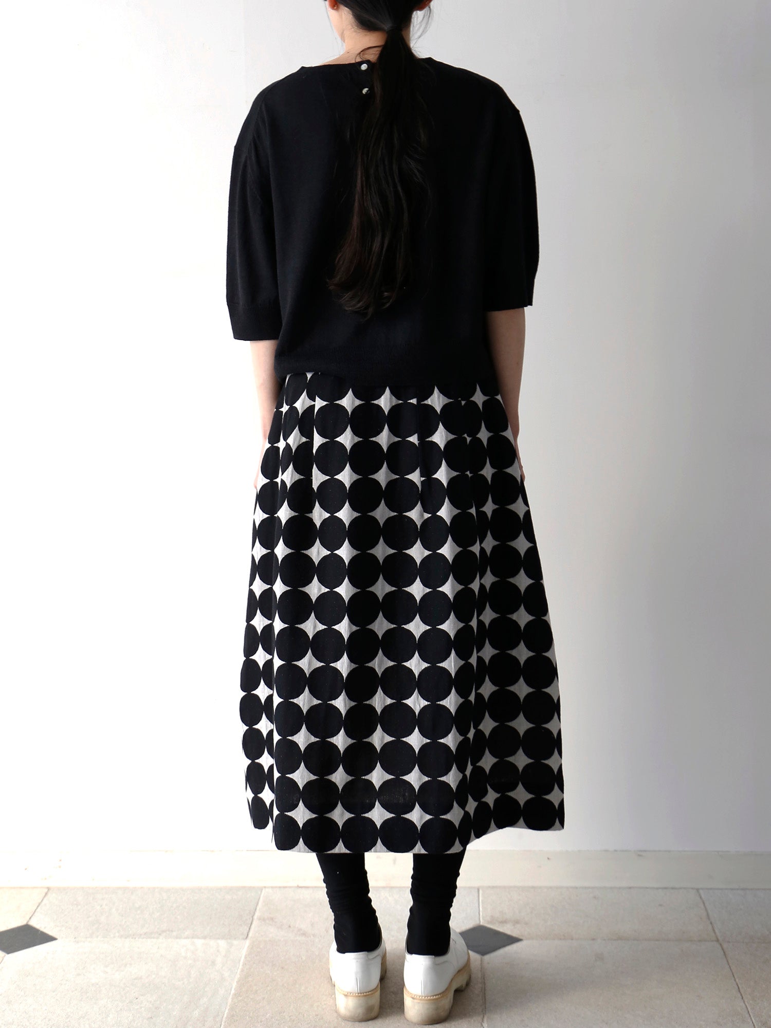 ゆったりとした身幅に、肘にかかるほどの5分袖。身体のラインを拾いすぎず、透け感もないため、デイリーに活躍します。