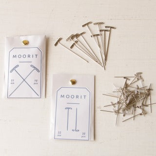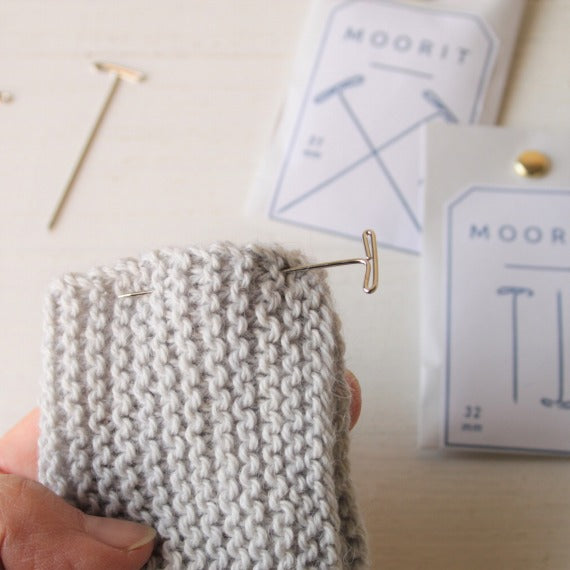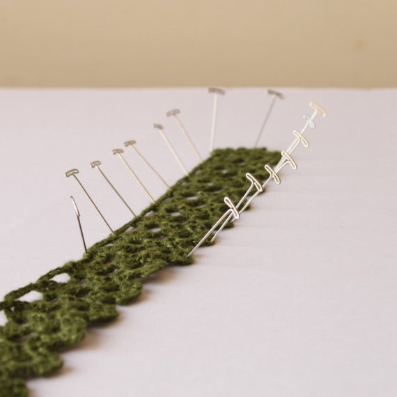 ウエットブロッキングの時に使うT型ピンです。レース模様のショールなど、模様をしっかり出したい作品のブロッキングにどうぞ。