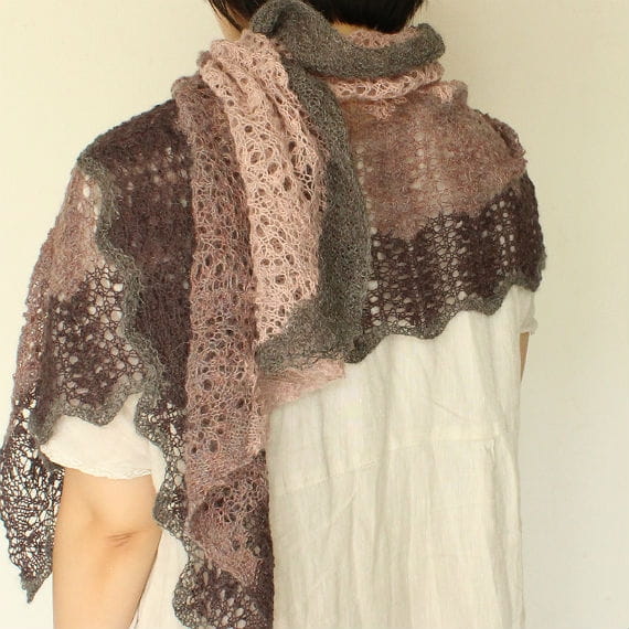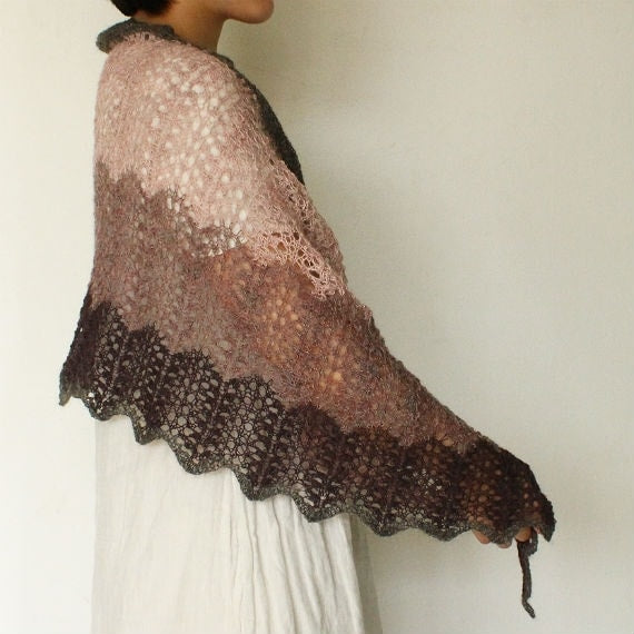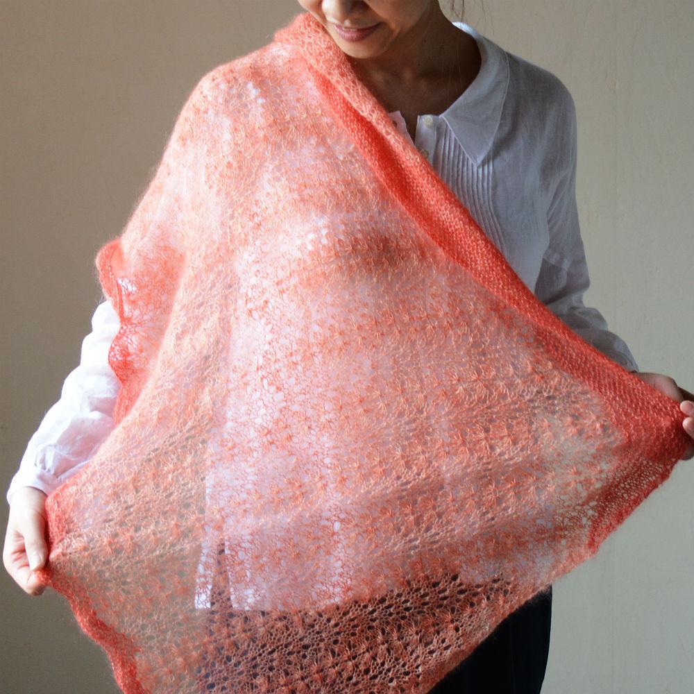 羽織りやすいトラペーズ(台形)のショールパターンです。