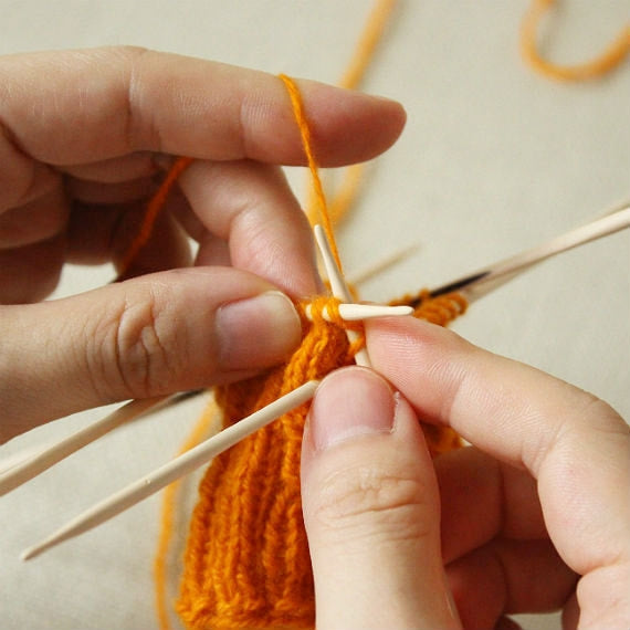 針の中央に行くにつれて、断面が円から三角に変化することにより、目が針の上で動きやすく輪編みがとてもスムーズに進められます。