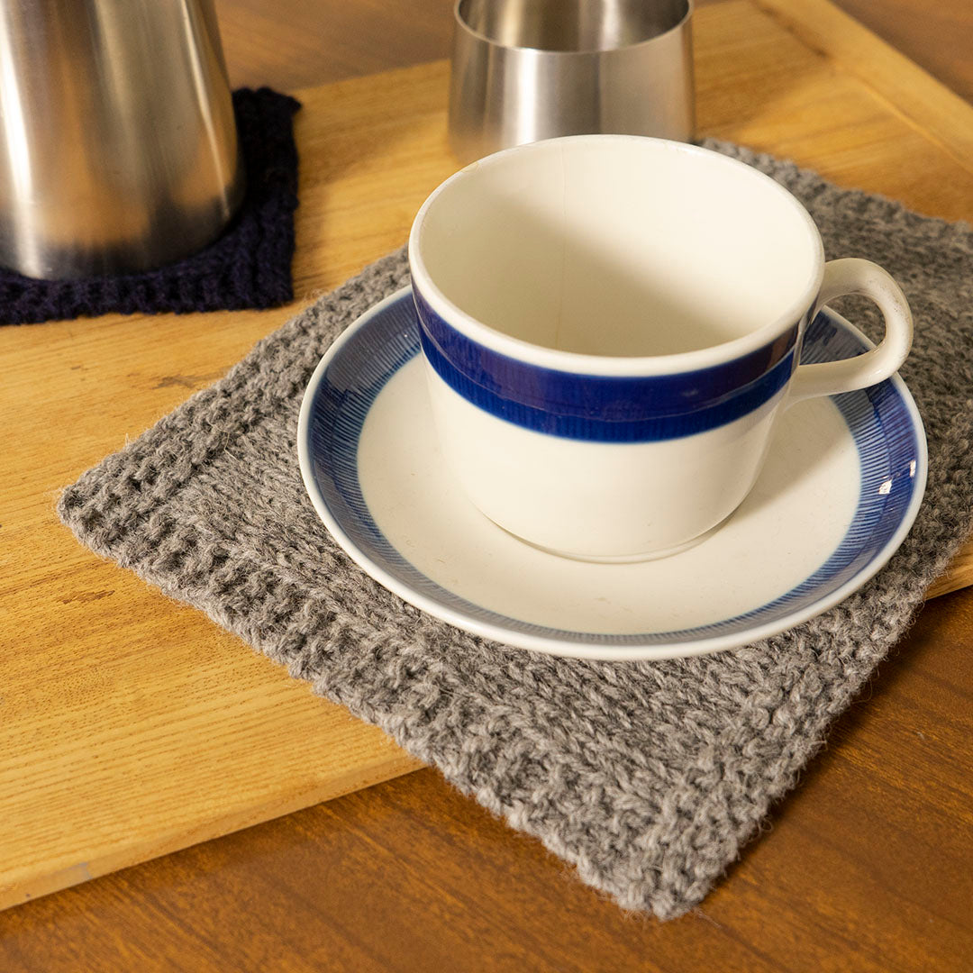 プロローグは、編み始めと編み終わりも含めた基本テクニックでつくるポットマットのキットです。