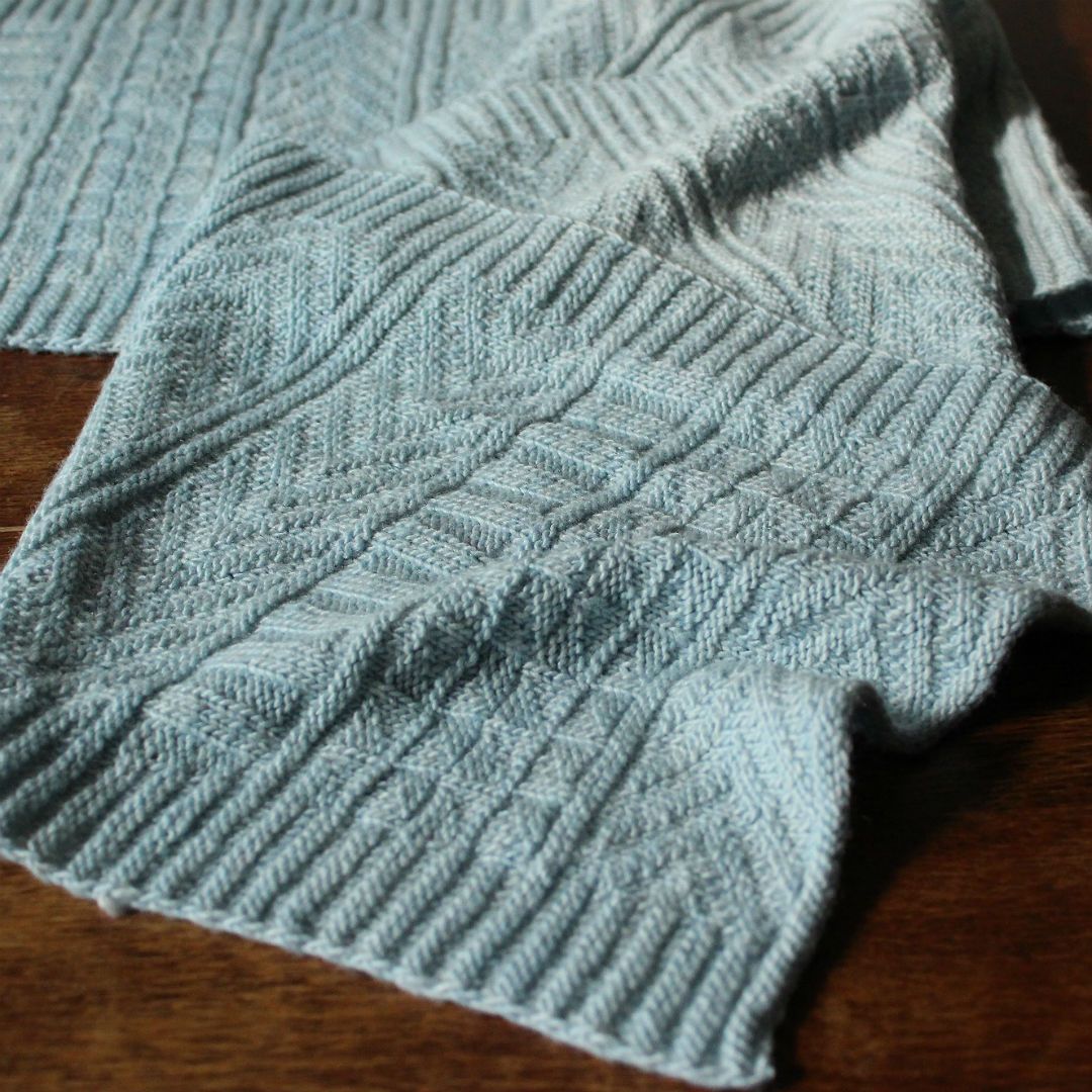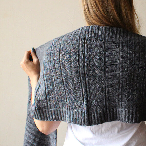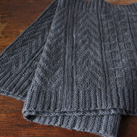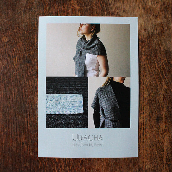 ロシア語で幸運という意味の「ウダチャ」と名付けられたスカーフ。裏目と表目の組み合わせでつくるガーンジー模様を、全面に編み込んでいきます。ガーンジー模様がつくる陰影に、上品な光沢が相まって美しい編地に仕上ります。シックな色で編めば、男性にも似合うスカーフに。
