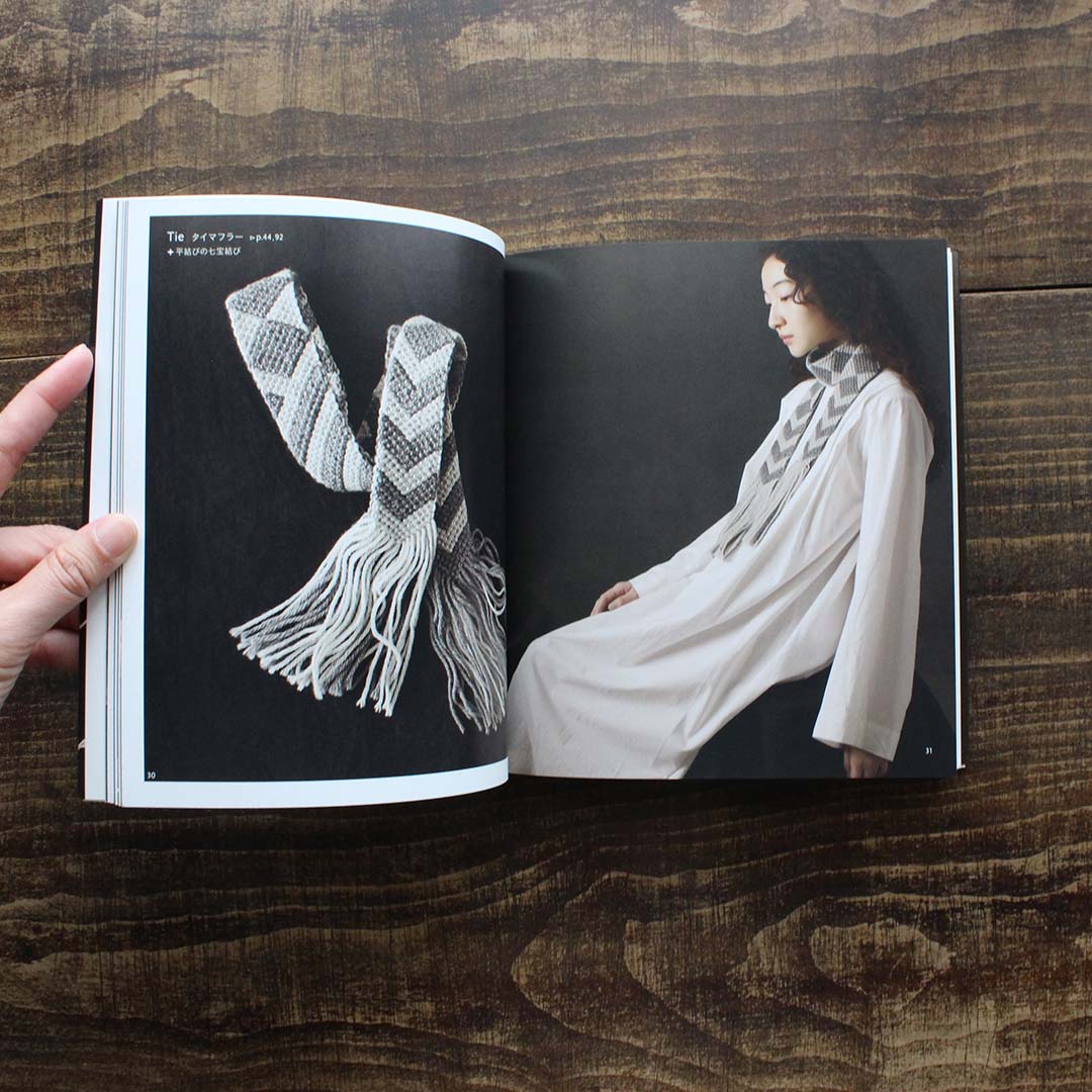 手芸作家・松田紗和さんによるマクラメレースの作品集「糸で作る文様 マクラメレースのアクセサリー」掲載のタイマフラーをつくる材料セットです。