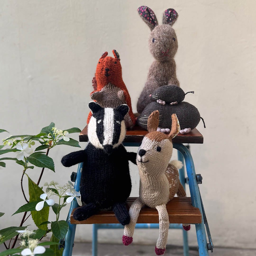金森さんがデザインした動物のぬいぐるみを、ムーリットが毛糸を編んでつくる作品として再構成しました。
