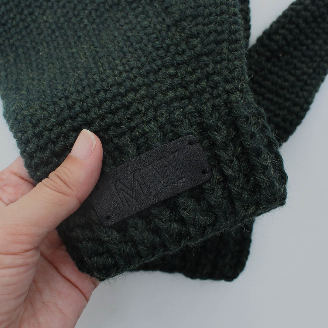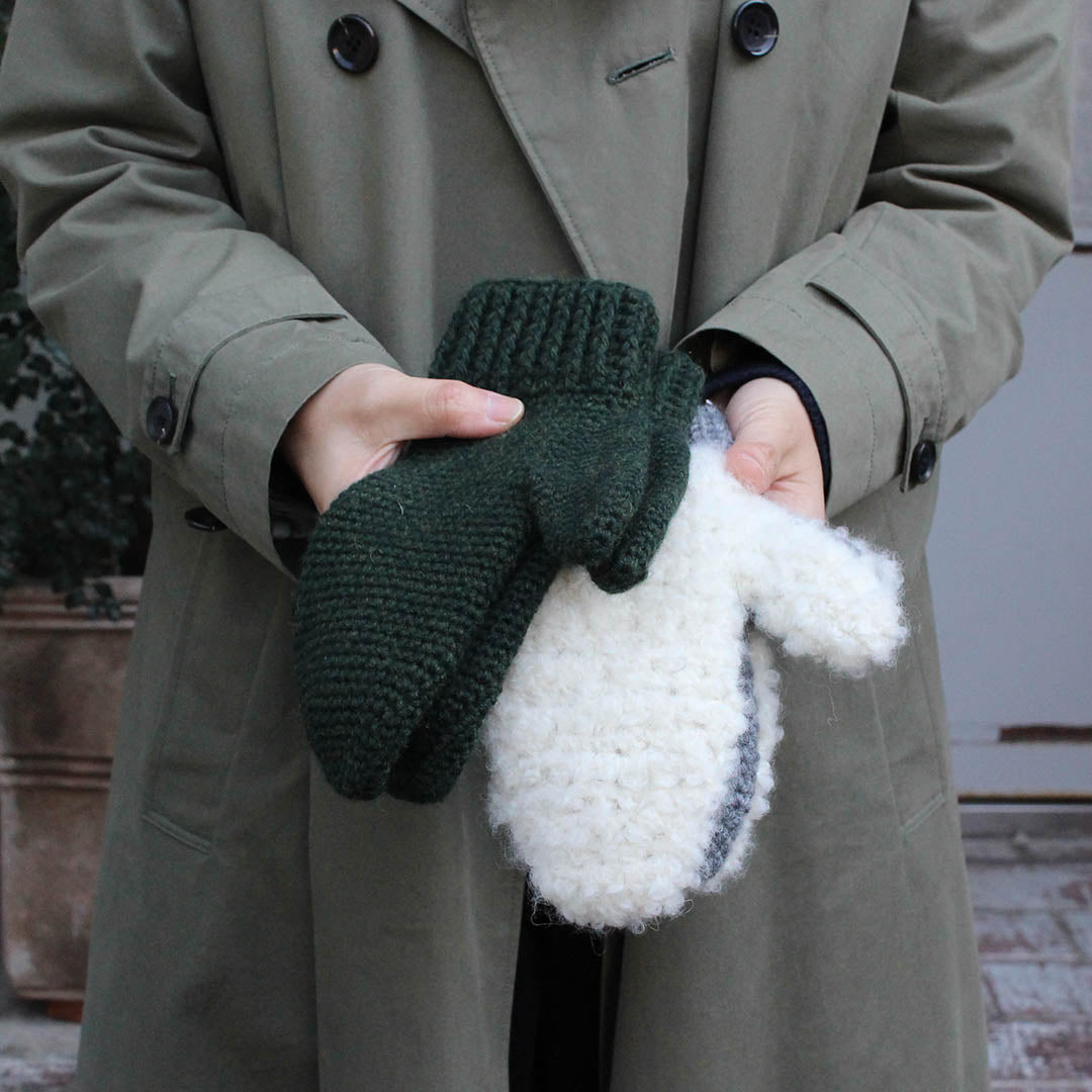 ふっくらとしたメリノウールを使って、かぎ針できっちりと編みあげたミトン。