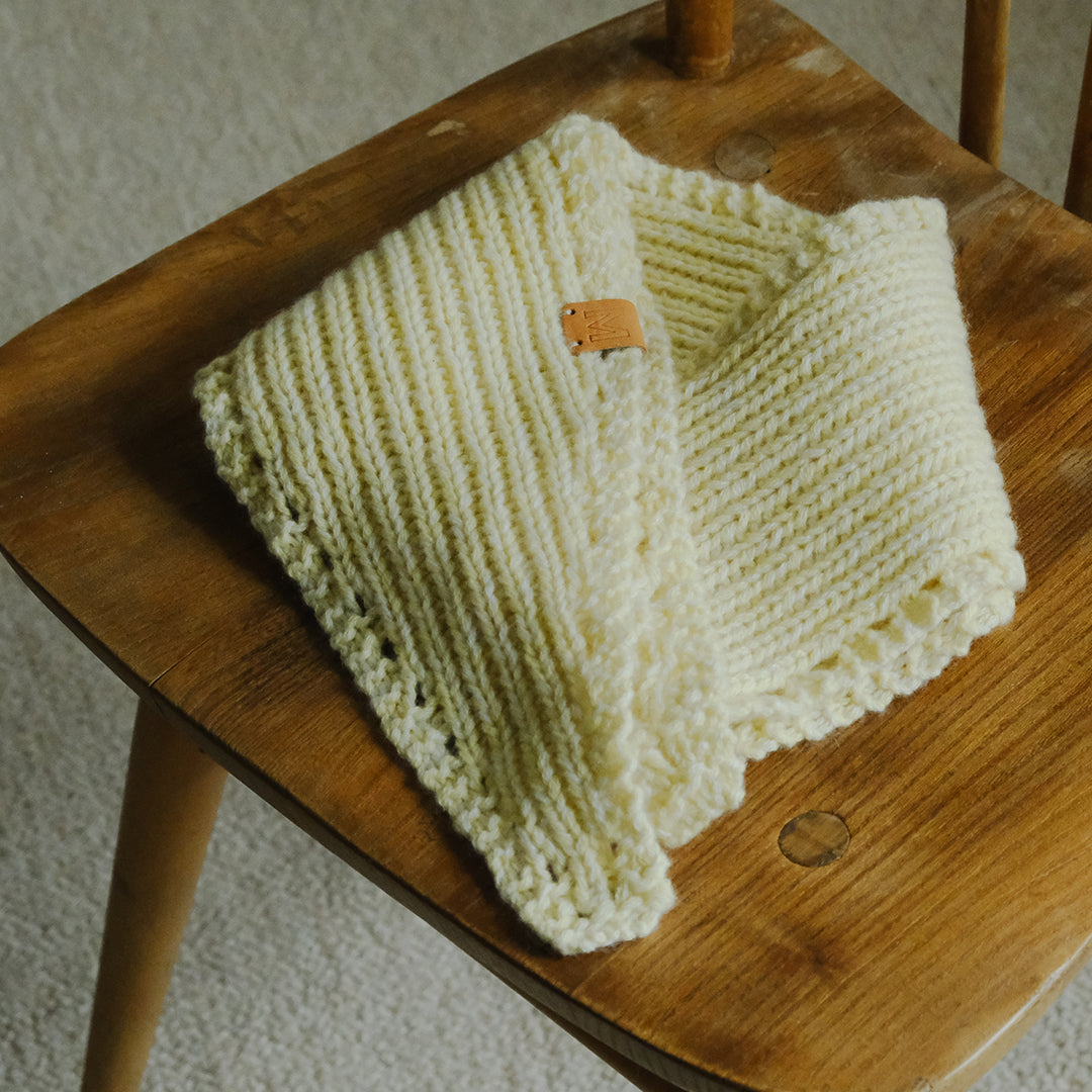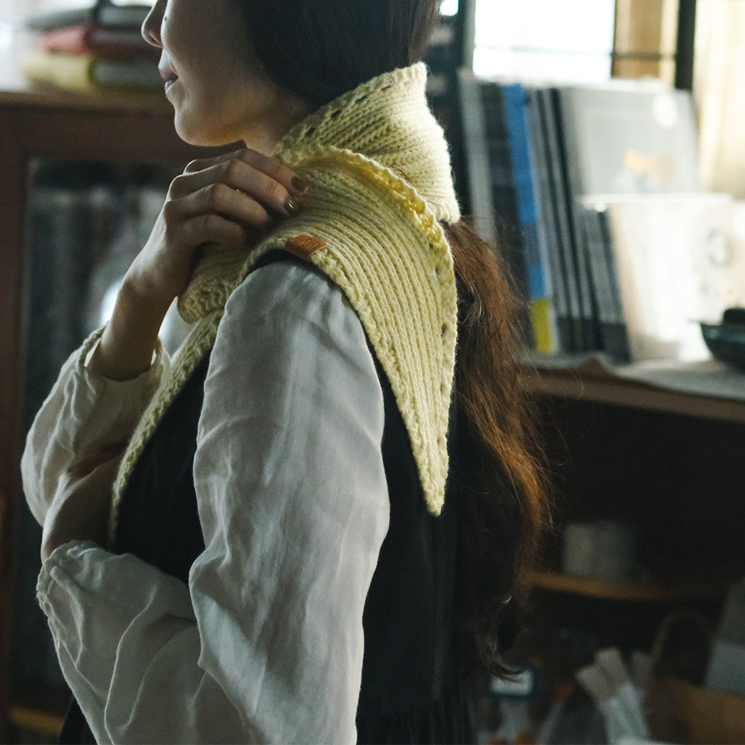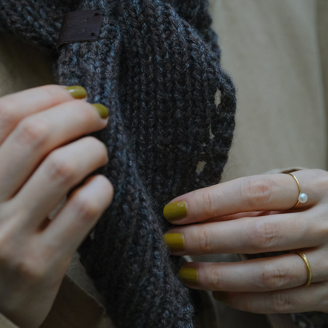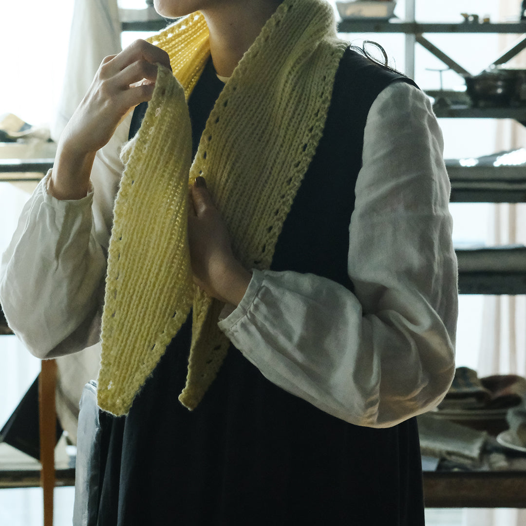ぬくもりにしあわせを感じるクリスマスシーズンにあわせて、ムーリットがみなさまのためにミニスカーフをおつくりします。素材に選んだのは国産のカシミヤ。選りすぐりの素材の魅力が伝わるよう、ひとつひとつ手編みでお届けします。