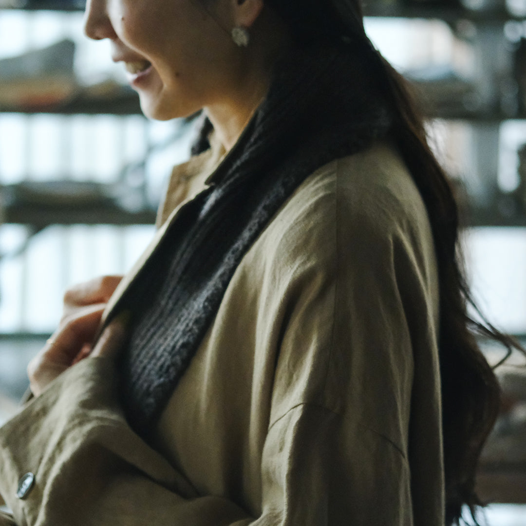 そんな素材の魅力を活かすため、国内の編み手さんが手編みでつくります。一日に編めるのはわずか一本。