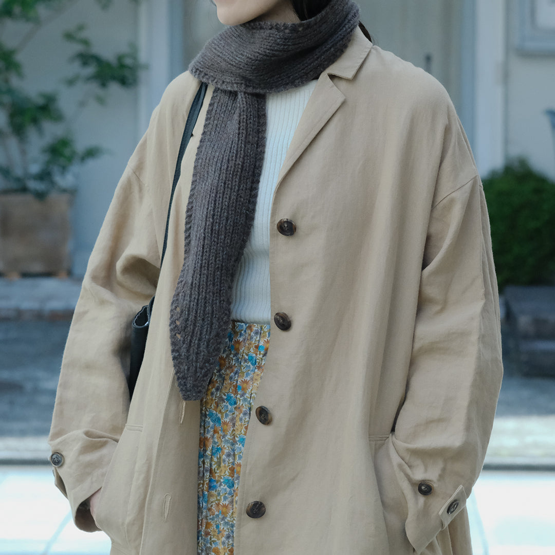 こちらは12cm×135cmとミニサイズなのでより軽やか。身に着けていることを意識させずに、さらりと巻けます。