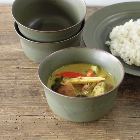 そんなオクシモロンにぴったりの器が出来上がり、とても嬉しく思っています。和食器のようであり北欧のもののようでもあり、と、色んな表情を持つ、どんな料理を盛ったときにも映える器です。