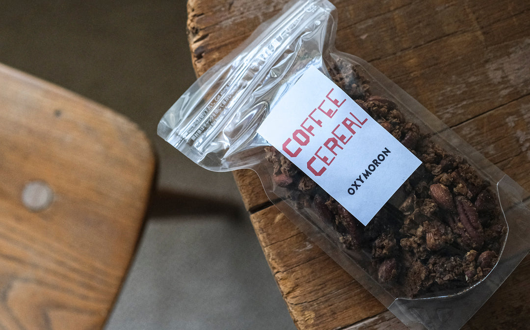 甘さ控えめの、コーヒー香るシリアルです。オクシモロンのオリジナルコーヒー豆「4 MILD」を混ぜ込み、ピーカンナッツとアーモンドをごろごろ入れました。一度食べたらやみつきになる香ばしい味…。